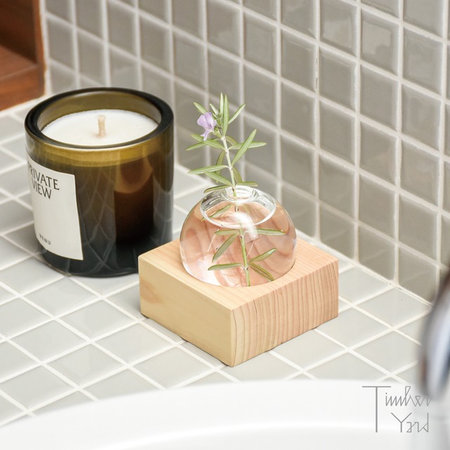 \暮らしに小さな安らぎを/ La luz Inc.|Wood Flower Vase single[ヒノキ] 【ちょっとしたスペースに】 丸いガラスのかわいいフラワーベースは野の花を飾ってもステキな空間に変えてくれます。洗面台の横、棚の上、キッチン、ダイニング・リビングテーブルなどちょこっとしたスペースに彩りを与えてくれます。 【トレイとしても!】 ガラスボールを外してアクセサリーなどの小物を入れるトレイとして使用することもできます。 【お水はたっぷりと】 手のひらに収まるコロンとしたガラス玉。お水を半分までにしてしまうと気付くと水垢で白く汚れてしまいます。口の小さなガラス玉の中を洗うのはなかなか難しいのです…。ですので、ガラス玉に水を入れるときには”口のぎりぎりまで”入れていただくときれいにご使用いただけます。 〈スタッフより〉 植物を育てるのが苦手だけど、ほんのちょっと緑が欲しいという方にもおすすめです。緑があるだけでも心が安らぎます。 ▼その他のカラー・サイズ https://timberyard.buyshop.jp/categories/5619112 ———————————————— ▼商品情報 ブランド:la laz Inc. / ラ・ルース サイズ: 台 座|W60mm D60mm H65mm ガラス玉|Φ52mm カラー:ヒノキ 仕上げ:CNF+オイル塗装 品 番:102090 ———————————————— ▼ご注意ください ・ガラスに気泡や細かい傷が見られる場合がございますが良品となります。ご了承ください。 ・強い衝撃を与えると割れる場合がございますのでご注意ください。 ・塗装を施してあるものは、強くこすると塗装が薄くなったりはがれる場合がございますのでご注意ください。 ・本製品は木製品のため、ぬれたものなどをのせたり、入れると割れや変形、カビなどが生じる可能性があります。ご使用の際にはご注意ください。 ・本製品は天然素材のため、性質上の節や木目がありますが木の特性としてご理解ください。またわずかな欠けが見られる場合がございます。 ———————————————— #フラワーベース #花器 #ラ・ルース #ラルース