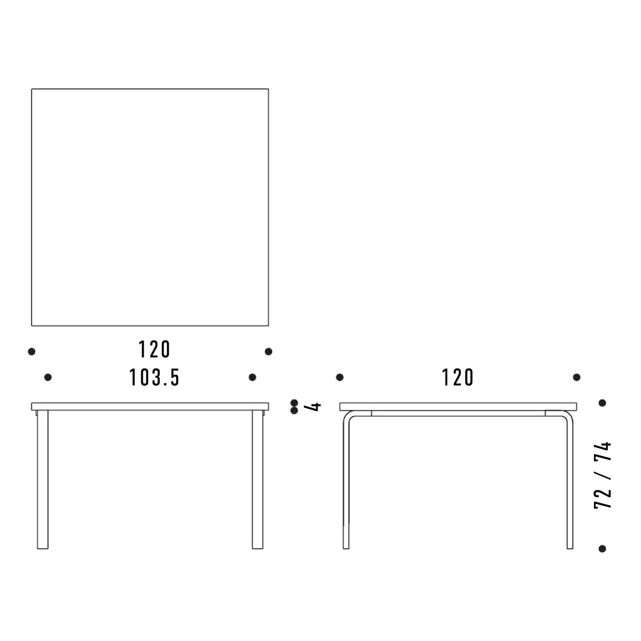 テーブル 84 / ブラック リノリウム / W120xD120cm / 4~6人掛けテーブル / 正方形 / アアルト テーブル / L - レッグ / アルヴァ・アアルト / Table 84 / black linoleum / Artek(アルテック)/ テーブル / ワークスペース / 正規販売店