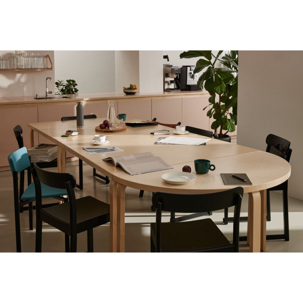 幅120cm、奥行120cmの「テーブル 84」は、アアルトのテーブルシリーズの中でも一番大きな”正方形”のテーブル。ダイニングテーブルにもワークスペース用のテーブルにも使うことができ、同じくアアルトのテーブルシリーズの半円形の「テーブル 95」と組み合わせてホームパーティーを楽しんだりすることもできます。ワークスペースで使う時は、メンテナンス性を重視してホワイト ラミネートかブラック リノリウム天板がおすすめです。
