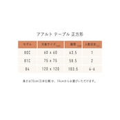 幅75cm、奥行75cmの「テーブル 81C」は、アアルトのテーブルシリーズの中でも真ん中のサイズの”正方形”のテーブル。1人暮らしや2人暮らしの方で、〈こじんまりとしてるけど使い勝手がよくて居心地のよいダイニングスペースをつくりたい〉という方におすすめのテーブルです。75cm四方なので、一般的なサイズの長方形のランチョンマットであれば多少の余裕をもって敷くことができます。また基本的に2人用のイメージですが、スツール 60などを組み合わせて最大4人で楽しむこともできます。