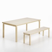 アアルトが開発した「L-レッグ」の脚を直接取り付ける設計です。複雑な構造を排したシンプルな美しさと、堅牢なつくりが共存しています。また、全長約150cmとゆとりがあり、複数人がゆったりと腰を掛けられるロングベンチです。ダイナミックなサイズながら、背もたれがないことで空間を仕切らず、圧迫感のない視線の抜けと、自由な使い方を可能にしています。