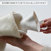 ソファやラウンジチェアに座るひととき、ひざ掛けと一緒に湯たんぽを添えると、心も体もほっと安らぎます。お気に入りの本や音楽とともに、ぬくもりのある時間を。