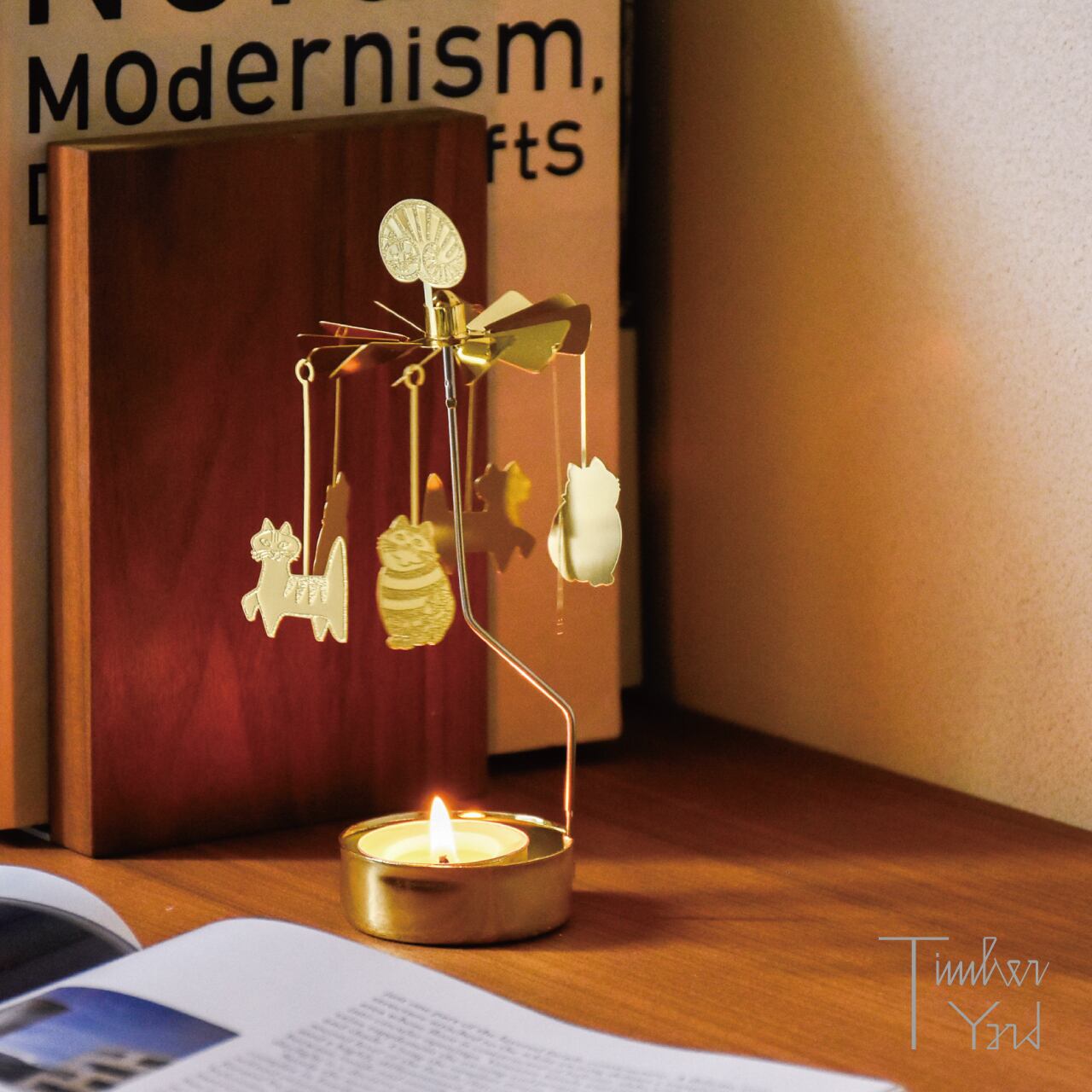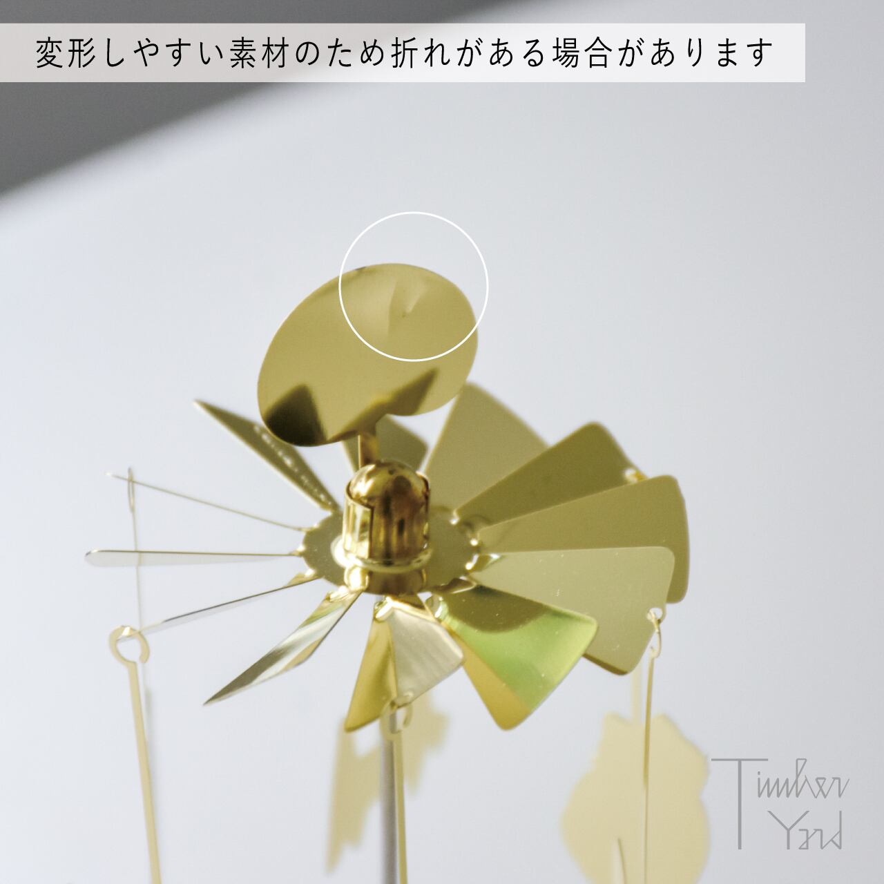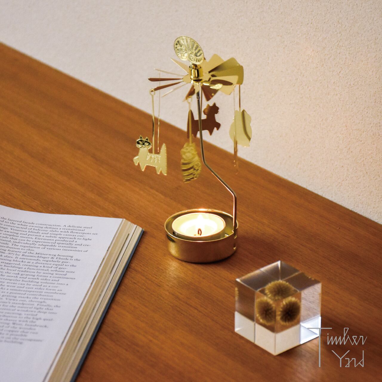 炎の揺らぎによって羽が回転する、ロータリーキャンドル。火を灯すと、メタル素材の羽が静かにくるくるとまわりはじめ、繊細なモチーフがふわりと揺れながら、輝きを放ちます。キャンドルの光が羽やモビールに反射して、壁やテーブルにもやさしい光の模様が広がる、幻想的なひとときを過ごすことができます。