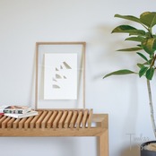 上質なマット紙に切り抜きとエンボス加工でミニマルなモチーフが表現されたアート作品です。