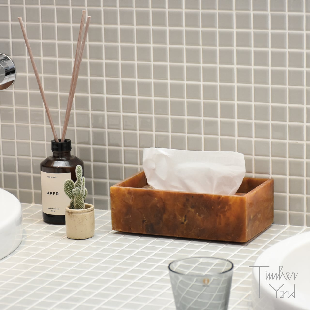 Mist Tissue Boxは、ティッシュを美しく収納できる、スリムで実用的なアイテムです。マーブル模様のレジンで作られており、耐久性に優れるとともに、さりげない上品さを漂わせます。幾何学的でミニマルなデザインは、誠実で洗練された美しさを備えています。