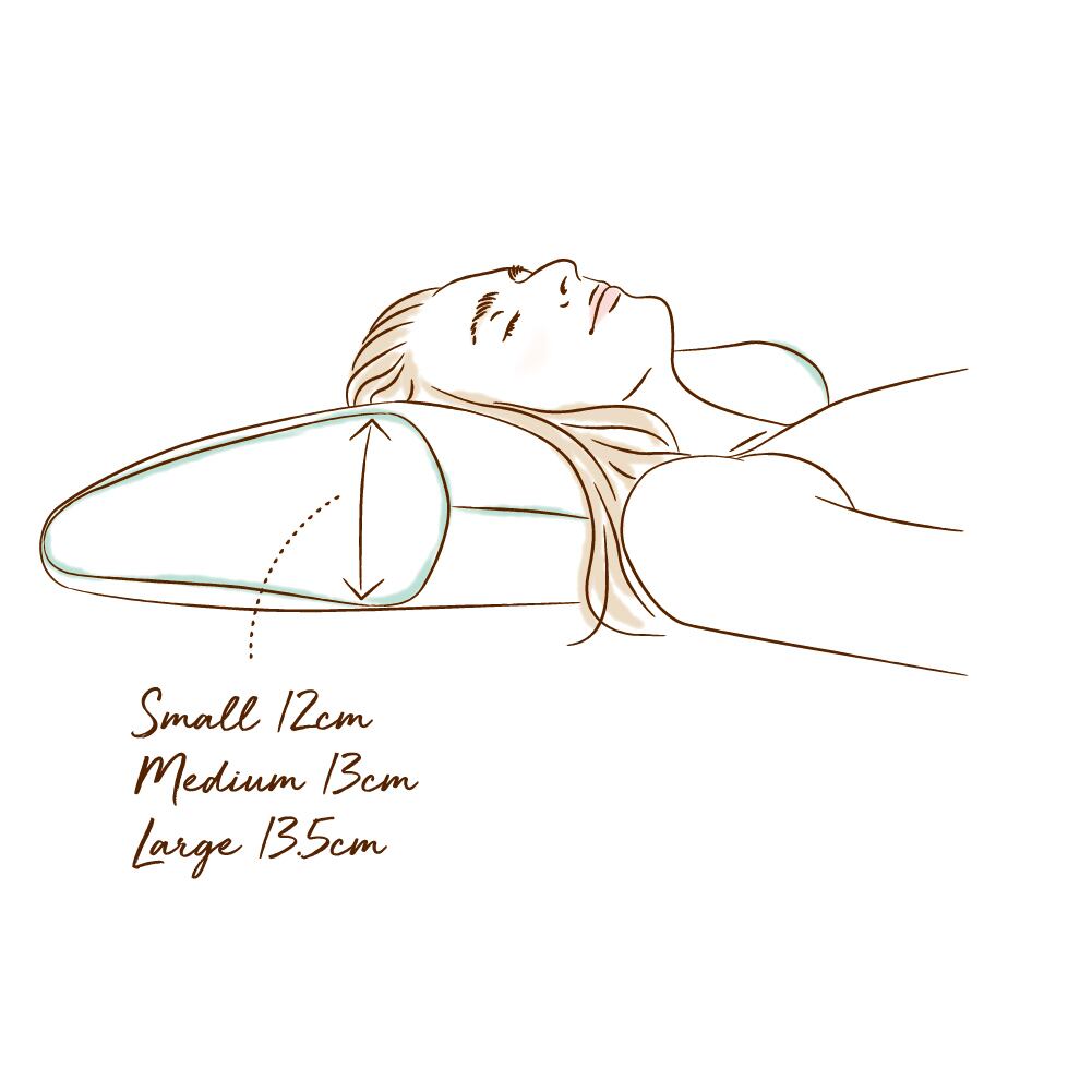 仰向け・横向きどちらの寝姿勢にもフィットする独自のカーブ構造が、眠っている間に首本来の自然なアーチへと導き、首・肩の緊張を和らげます。日々の疲れを毎晩リセットし、本来のバランスを取り戻していく。明日の不安を少しでも減らす—— 。「カイロプラクティック ピロー」が毎日の眠りをしっかりとサポートします。高さはSMALL、MEDIUM、LARGEからお選びいただけます。