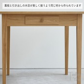 ナラ材は固有の美しい木目が特徴で、柾目には「虎班(とらふ)」と呼ばれる縞模様があります。これは本物の木ならではの表情であり、その木の素敵な個性です。ナラ材は年を経るにつれ、黄味を増し飴色へと味わい深く変化していきます。オイルでのメンテナンスも楽しみになるでしょう。
