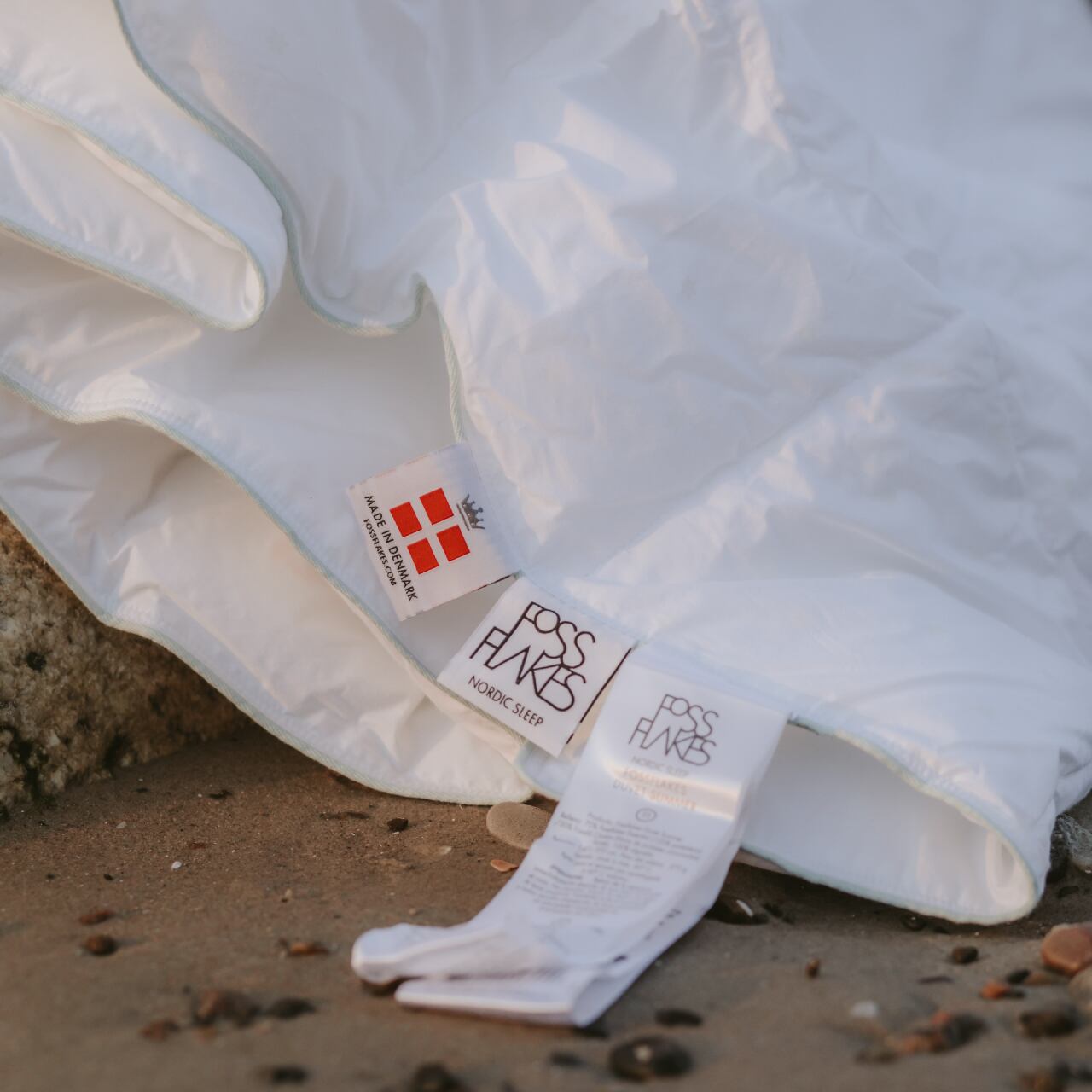 詰め物には、ノルディック スリープ独自の「フォスフレイクス」素材を使用。たっぷりと空気を含むため、軽やかなのにしっかりとした弾力があります。洗濯機・乾燥機の使用も可能。毎日の使用でも型くずれせず、ふんわり感が長続きします。サイズはシングル、ダブル、クイーンからお選びいただけます。