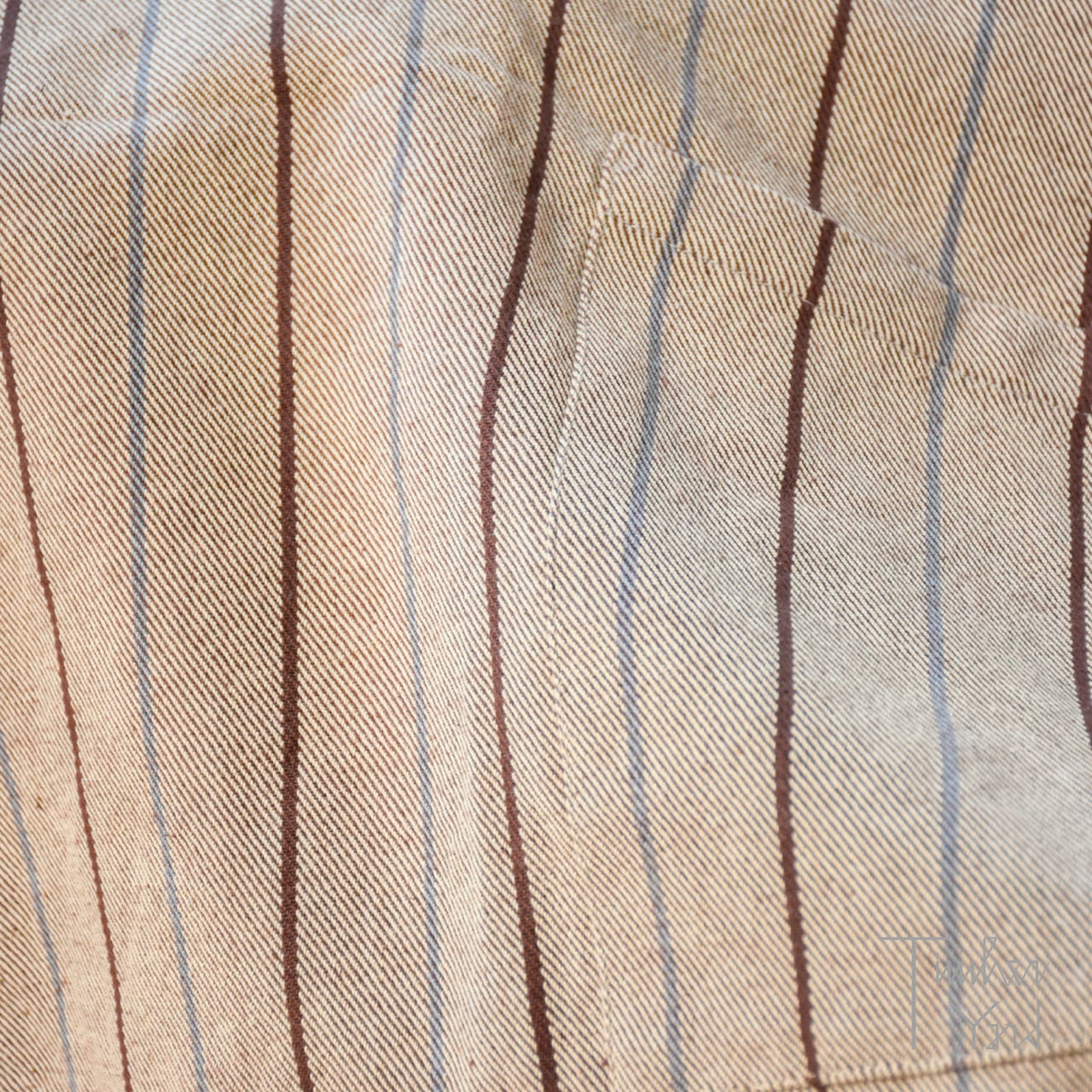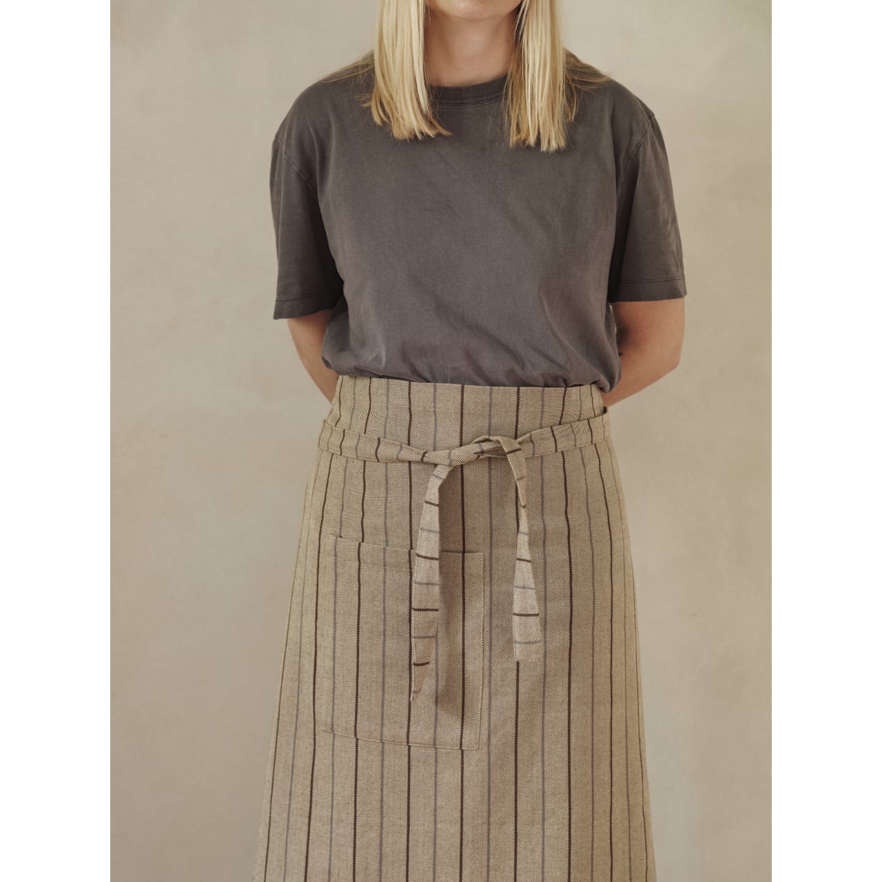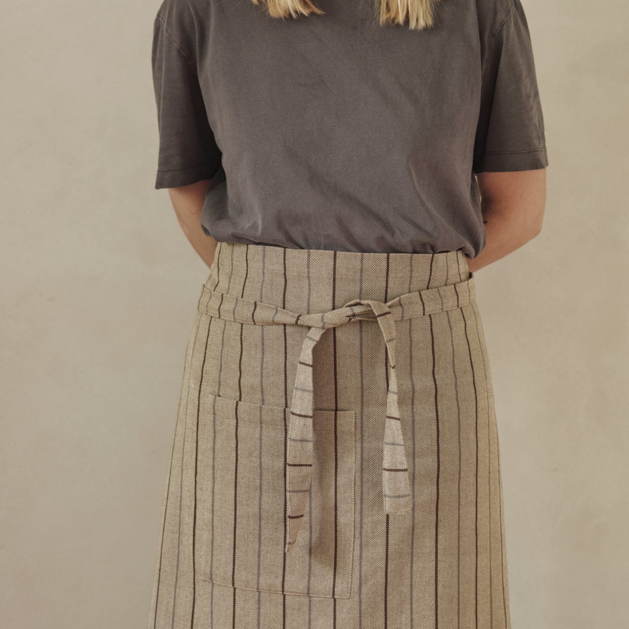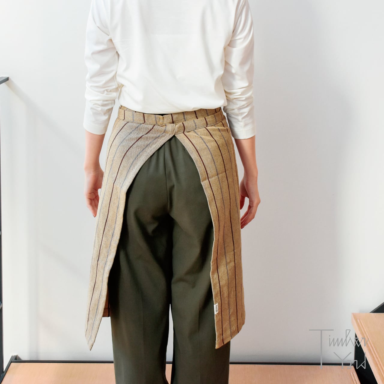 しっかりとしたツイル織りのGOTS認証オーガニックコットンを100%使用。2トーンの織りに繊細なストライプを組み合わせた生地は、豊かな表情と上品な印象をあわせ持ち、キッチンに落ち着いた美しさを添えてくれます。