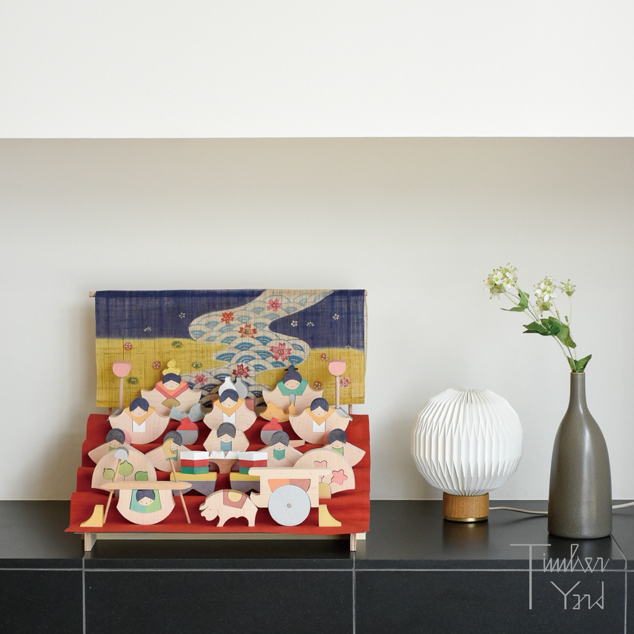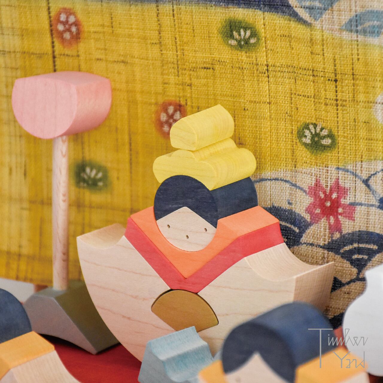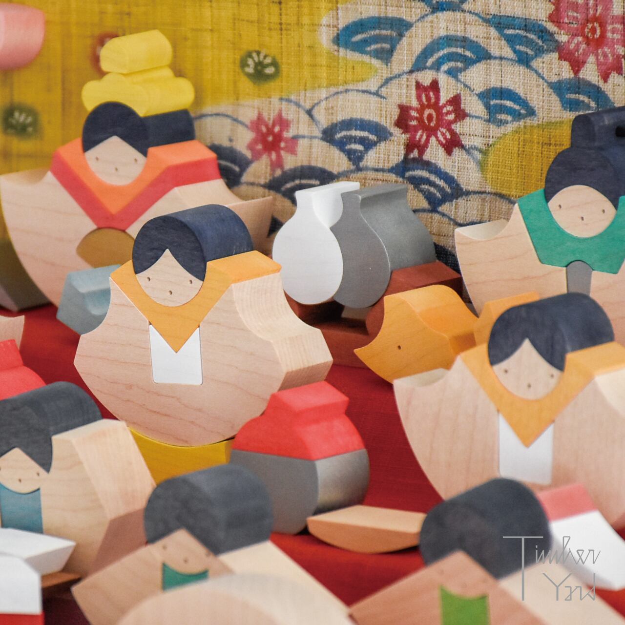 ◆組み木作家小黒三郎さんの節句人形は、木の温もりを感じる手作りならではの優しい風合いが特徴です。遊びを通して健やかに育ってほしいという願いが込められています。
