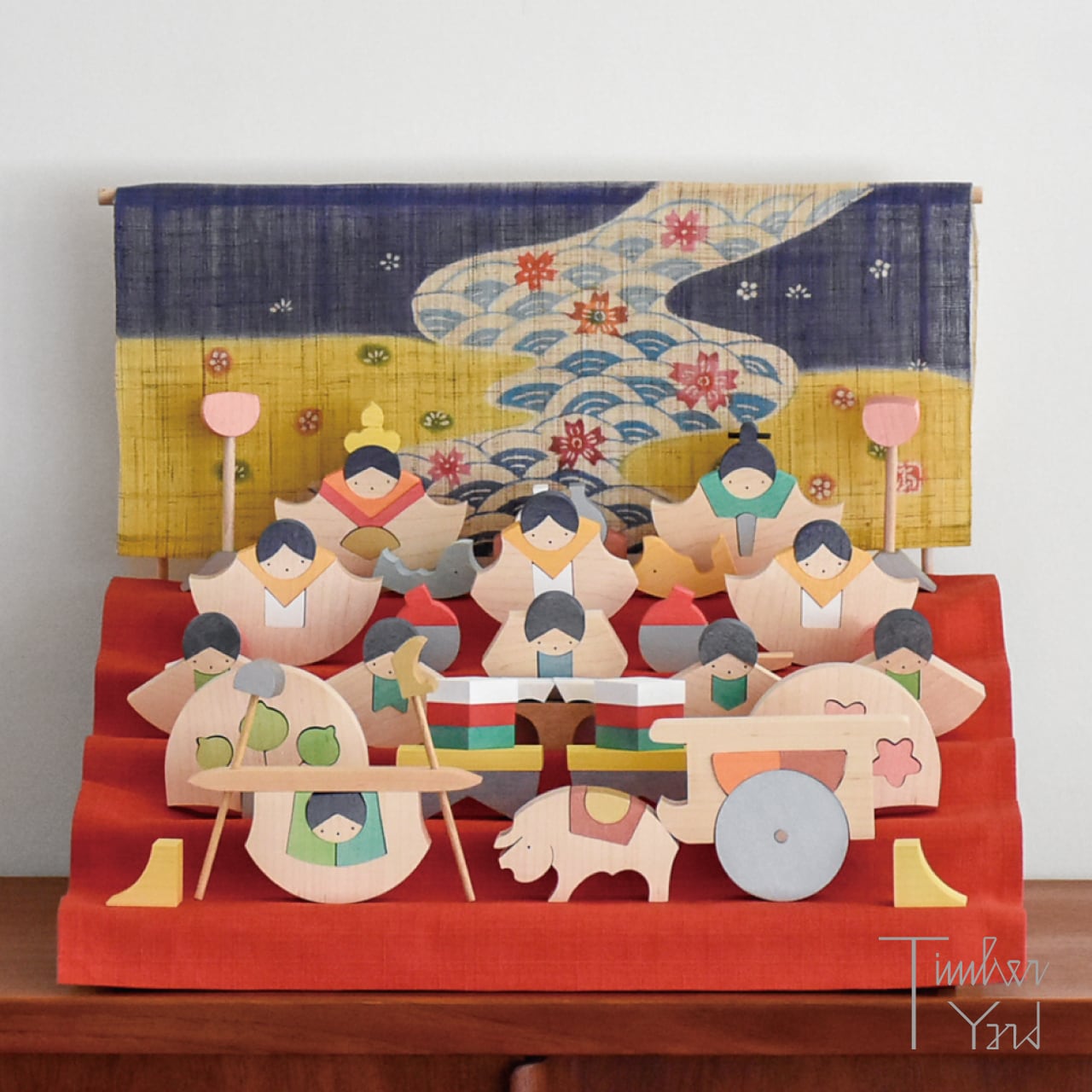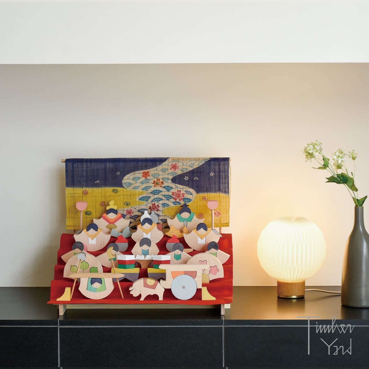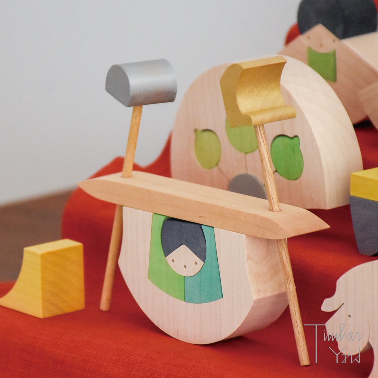 ◆組み木作家小黒三郎さんの節句人形は、木の温もりを感じる手作りならではの優しい風合いが特徴です。遊びを通して健やかに育ってほしいという願いが込められています。