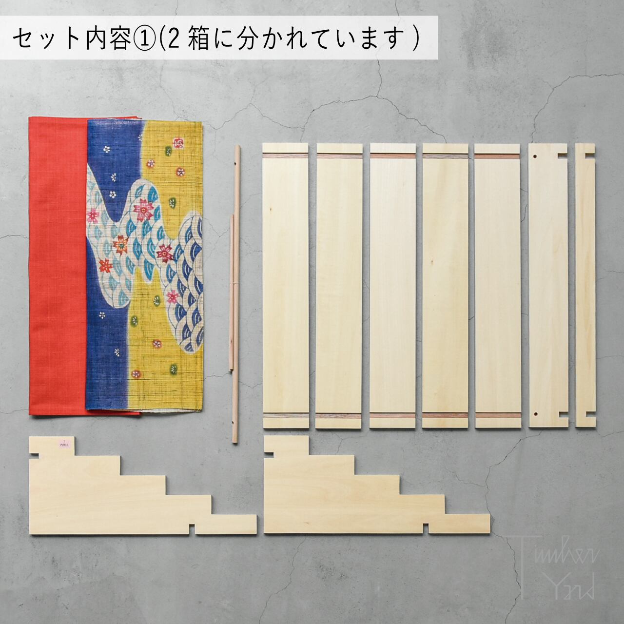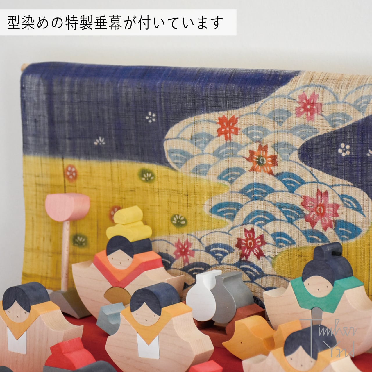 材 質:本体=メープル(厚24mm) 、容器=秋田杉曲げわっぱ、特製垂幕=麻 / 型染め、もうせん=木綿