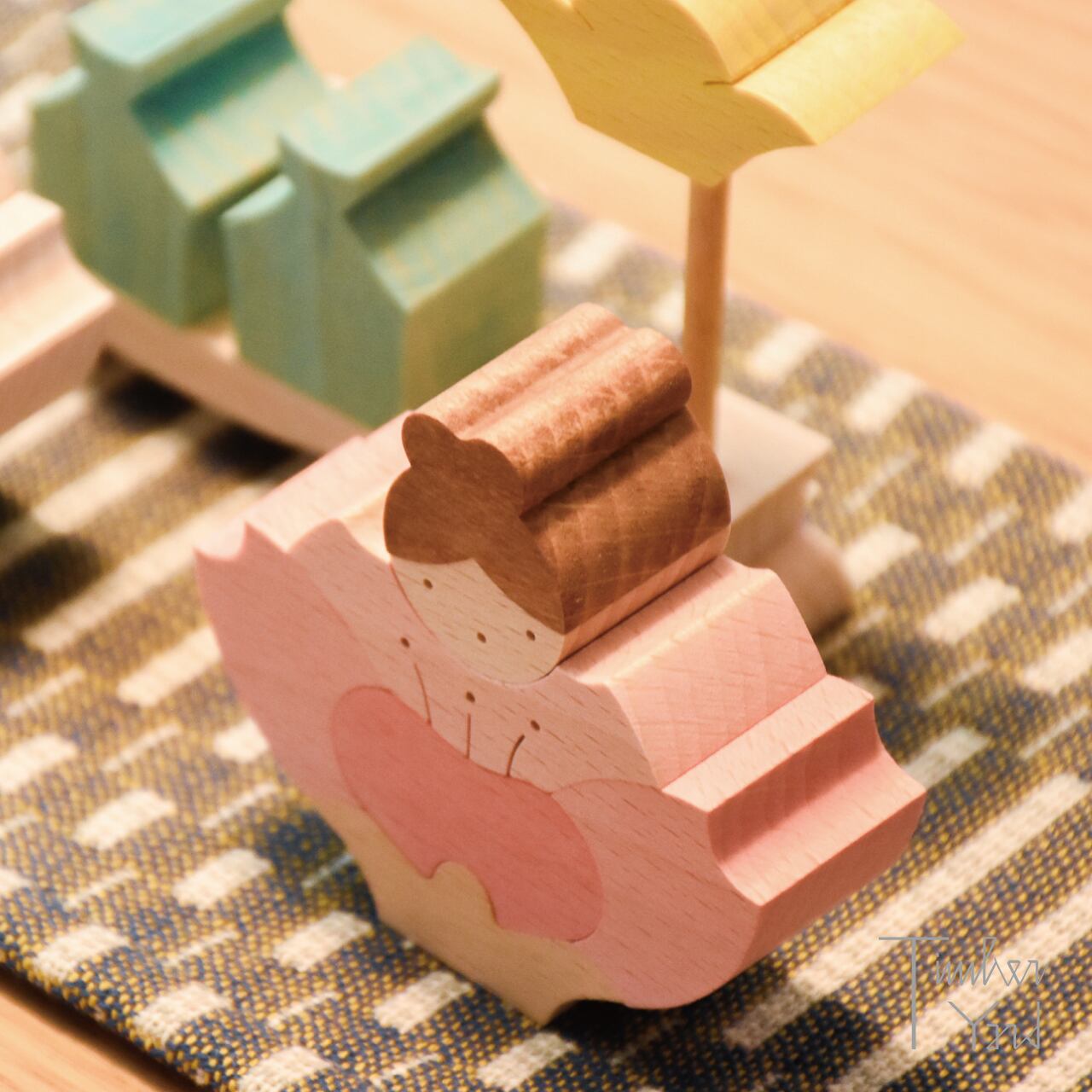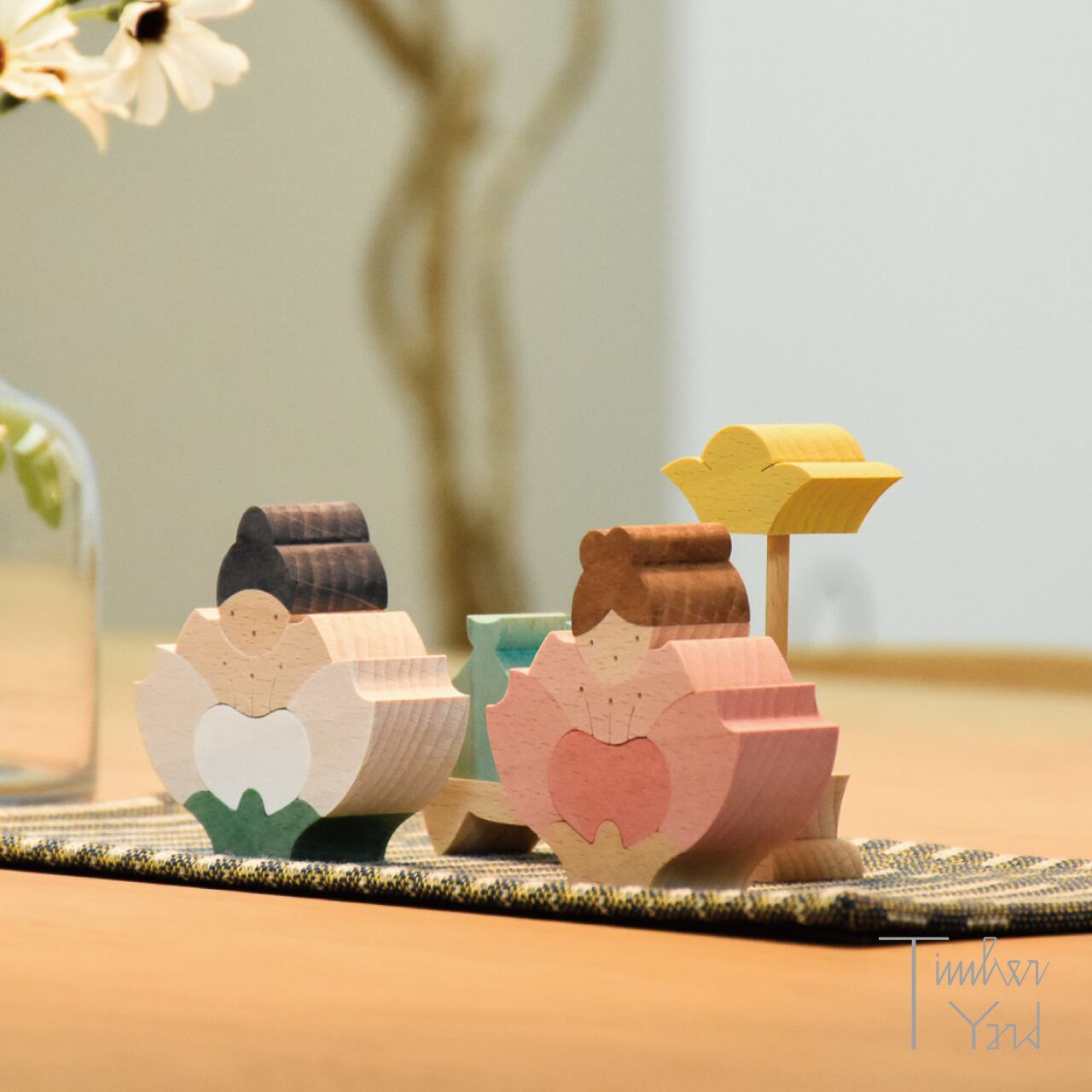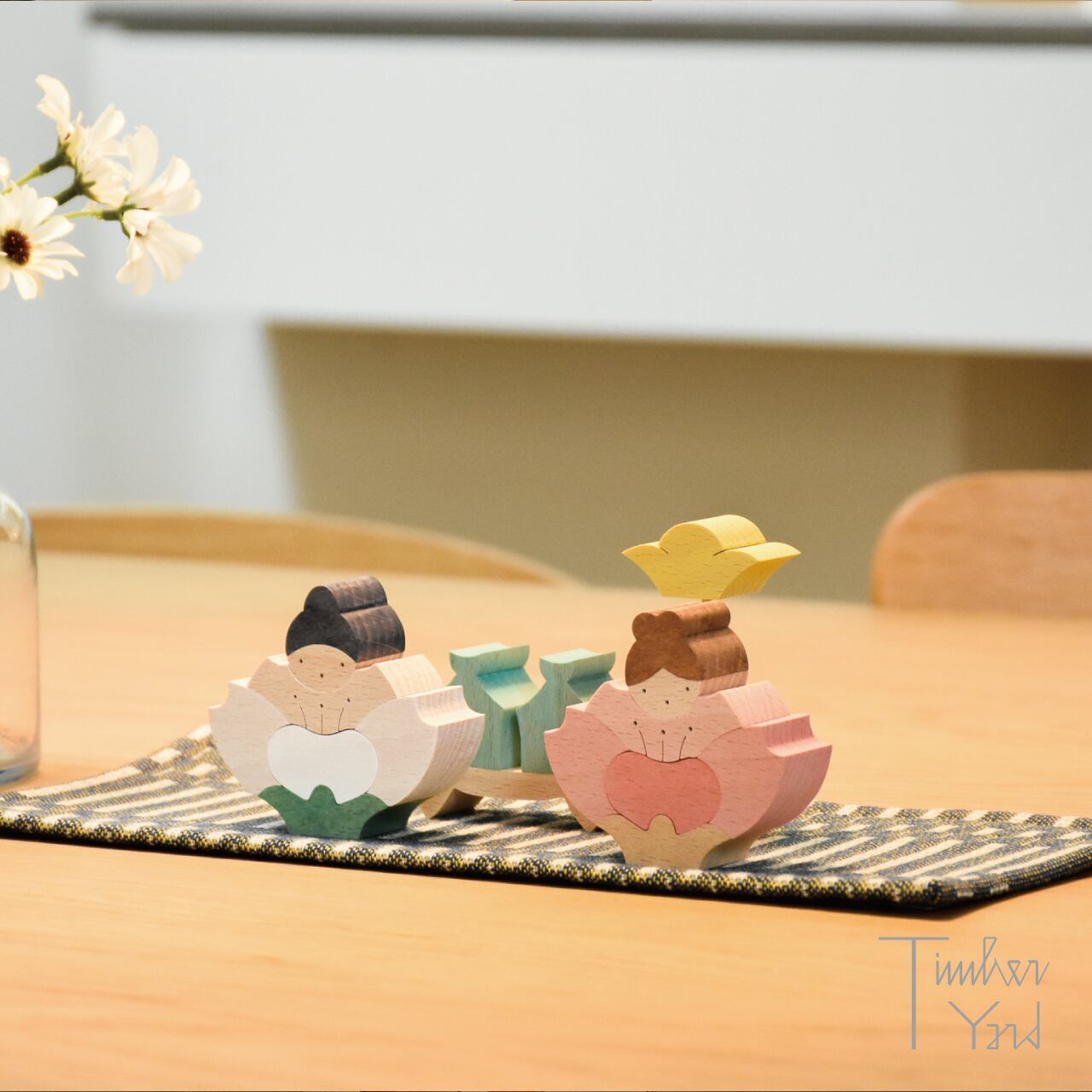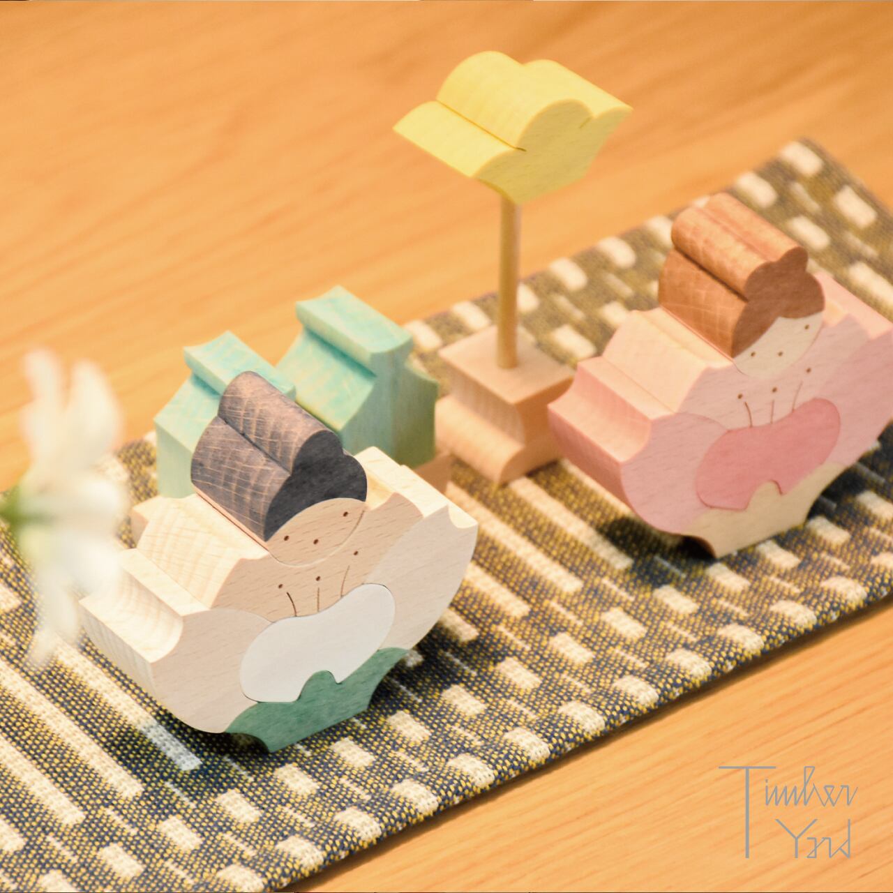 ◆組み木作家小黒三郎さんの節句人形は、木の温もりを感じる手作りならではの優しい風合いが特徴です。遊びを通して健やかに育ってほしいという願いが込められています。