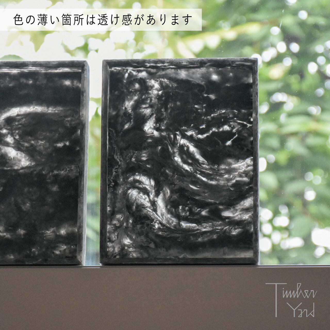 奥行き感のある美しいマーブル模様と、どこか幻想的な色合いが魅力のMist Tray。ひとつひとつ違う表情を持ち、同じものはふたつとありません。レジンで作られたトレイは、耐久性に優れるとともに、さりげない上品さを漂わせます。
