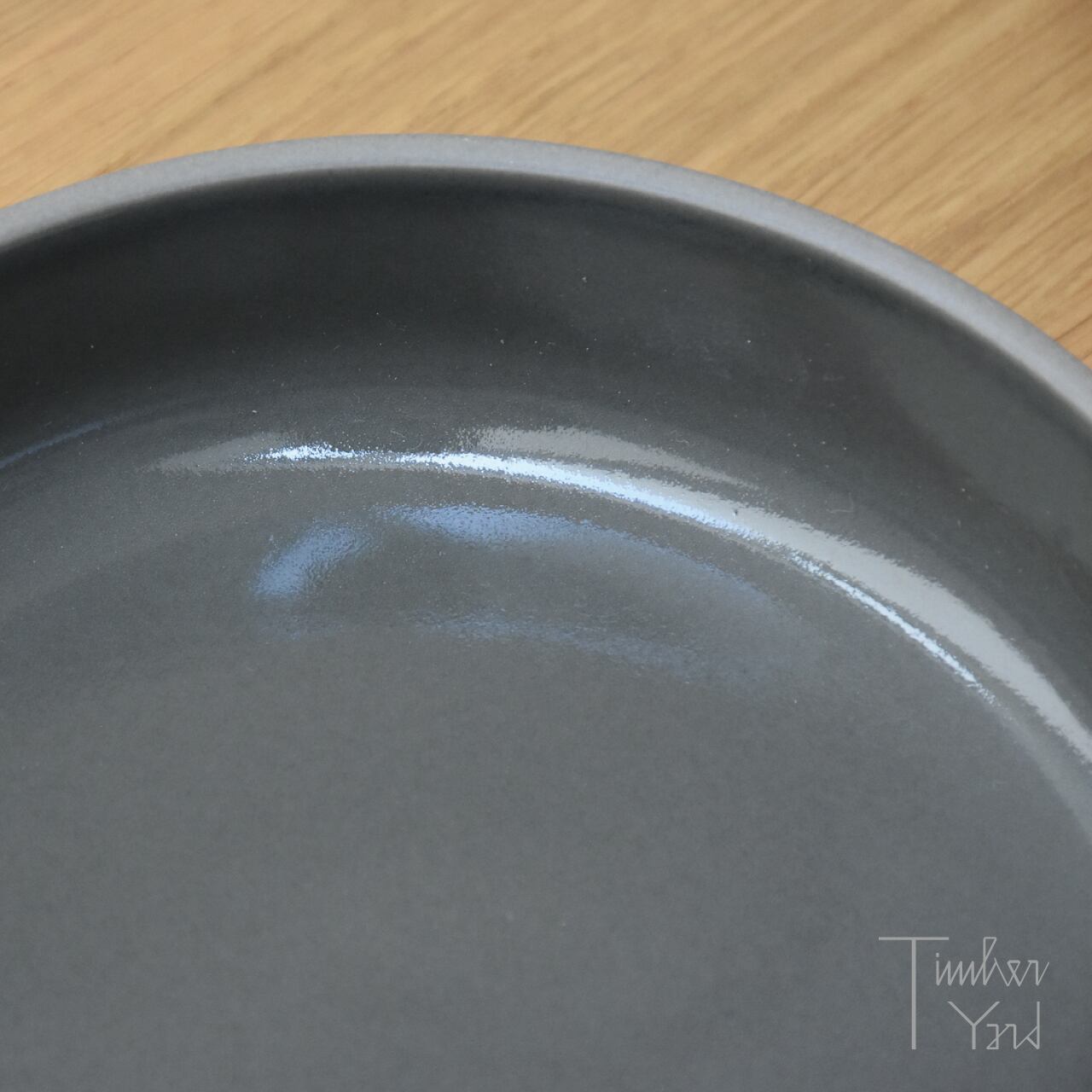 内側は釉薬が施され引っかかりのない滑らかな表面となっています。リムの立ち上がりにはやわらかな丸みを持たせ、口に運びやすく仕上げました。金属カトラリーでも欠けを気にせず安心してお使いいただけます。日常のさまざまな食卓シーンに馴染む、細部まで洗練されたデザインです。