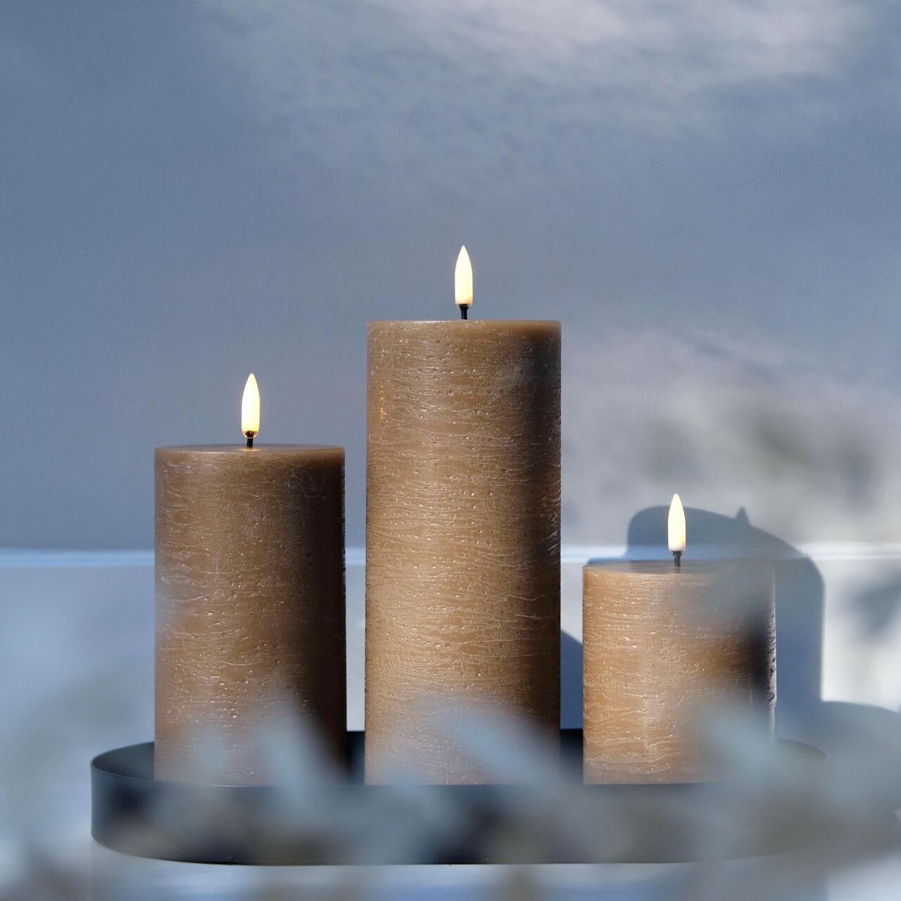 UYUNI Lighting|LED ピラーキャンドル ラスティック (サンドストーン) H15cm