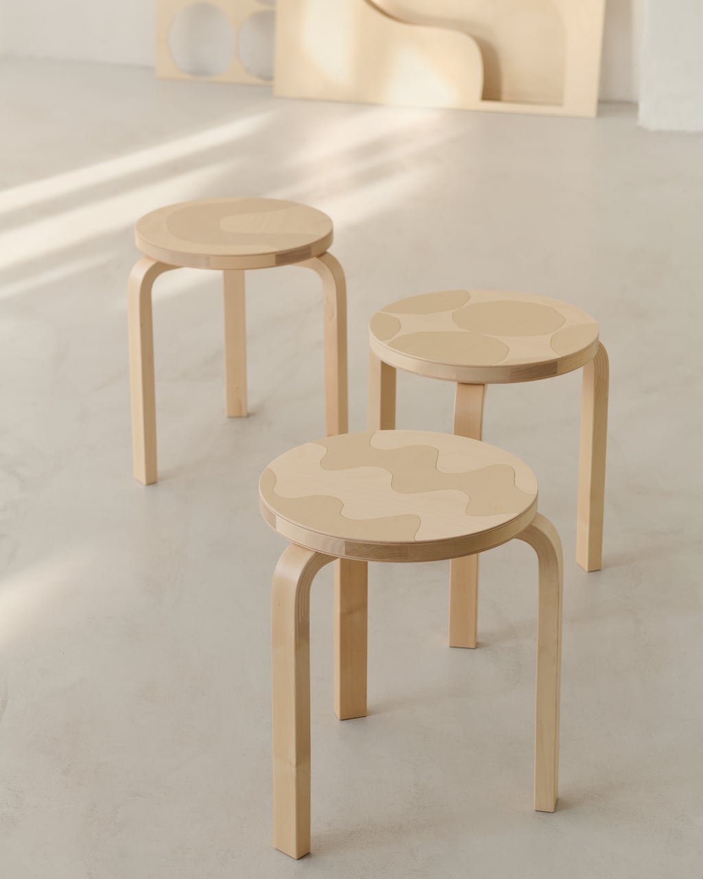 マリメッコのデザイナーであるマイヤ・イソラが手がけた3つの象徴的なパターンとアルヴァ・アアルトがデザインした「スツール60」がコラボレーション。マリメッコの明るくのびやかなエッセンスが、アルテックを代表する「スツール60」に新たな魅力を添えた特別モデルが誕生しました。