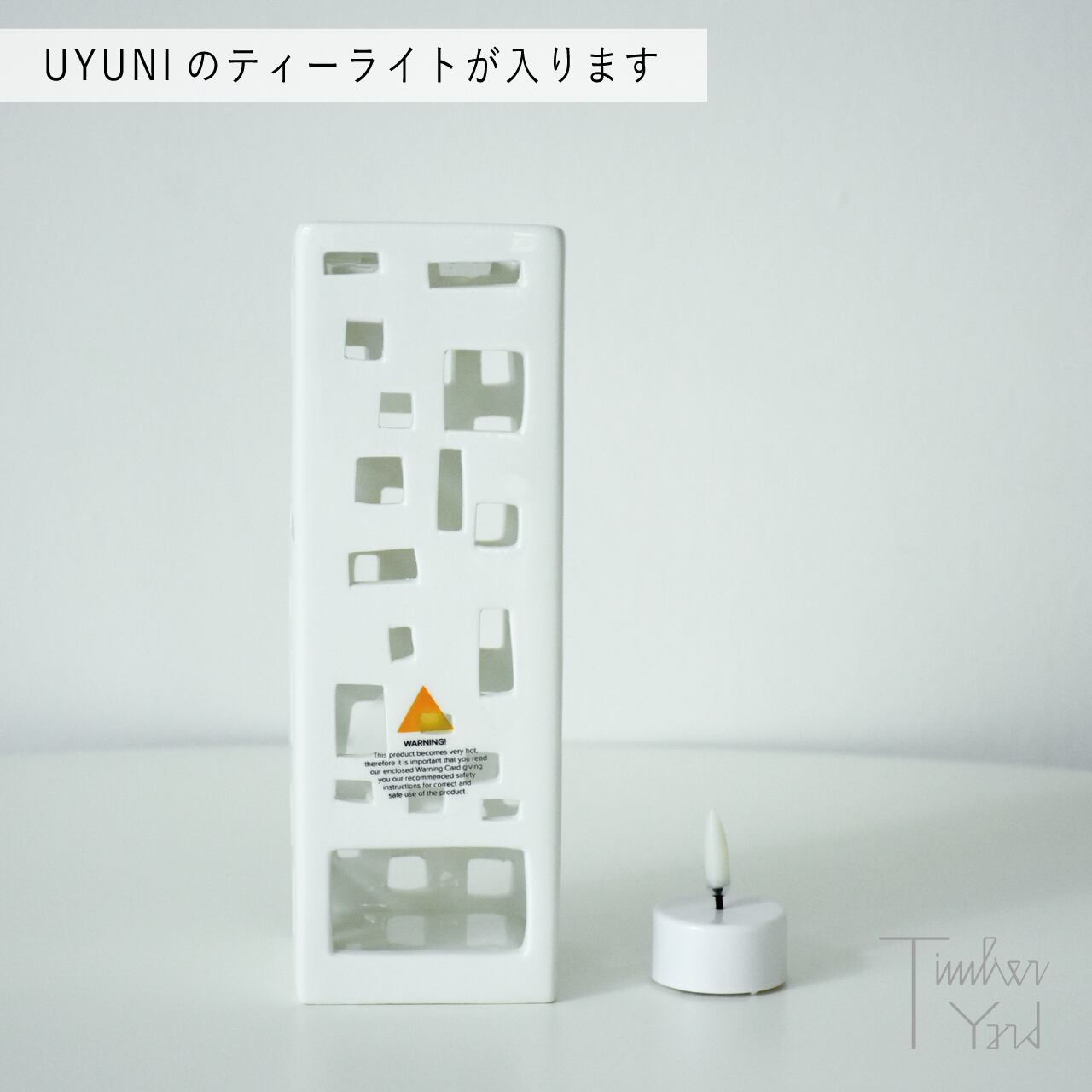 ・キャンドルを灯してご使用される場合、熱に弱い物の上や燃えやすいものの近くでのご使用はお控えください。また、使用後は本体がとても熱くなっているためしばらく触れないようにご注意ください。