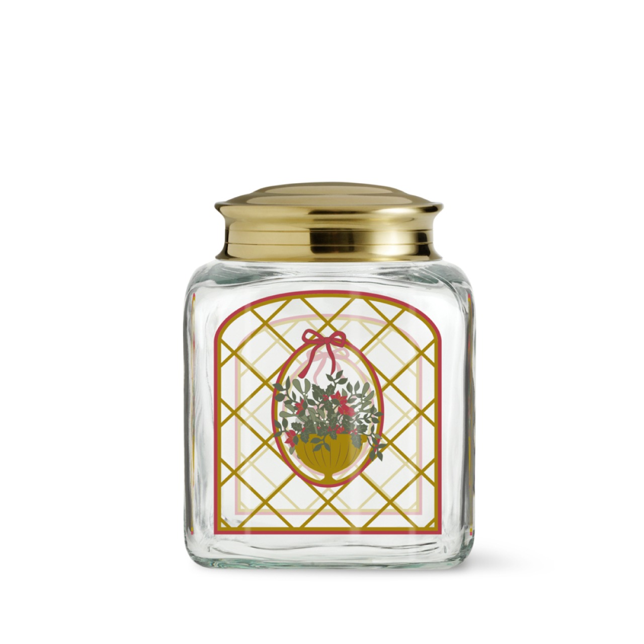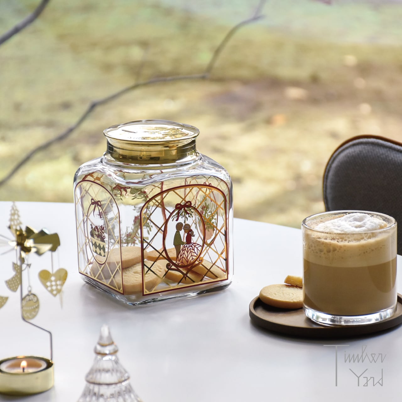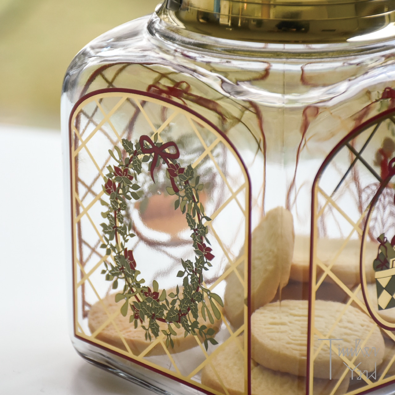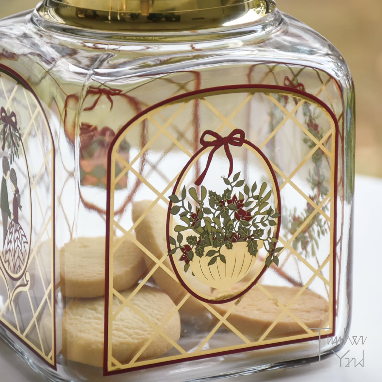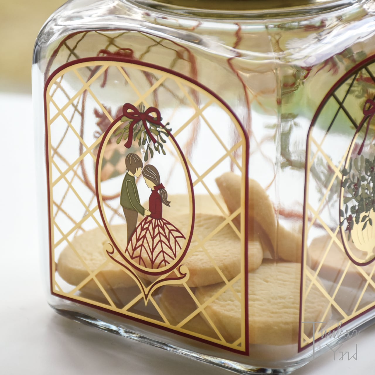 2025年のモチーフは、ノスタルジックなクリスマスの風景。クリスマスローズやヒイラギの実で作られた華やかなリース、フラワーブーケ、赤いリボン、そしてヤドリギの下で手を繋ぐ若いカップルが描かれ、ロマンチックなクリスマスを演出します。
