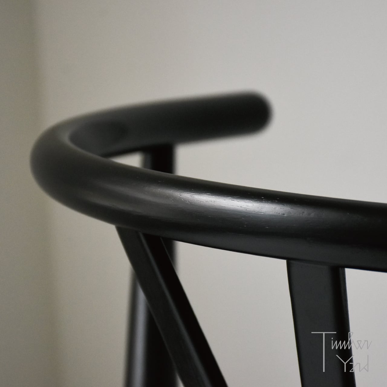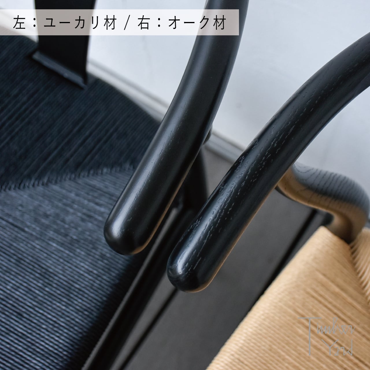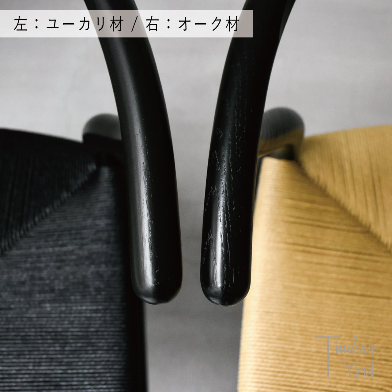 ユーカリ材の美しい木目を際立たせるため、目はじき仕上げのブラック塗装を施しています。ツヤ感のある「Gloss20」仕上げが上品な光沢を生み、洗練された高級感を演出。CH24(Yチェア)特有の彫刻的なフォルムをより引き立てます。