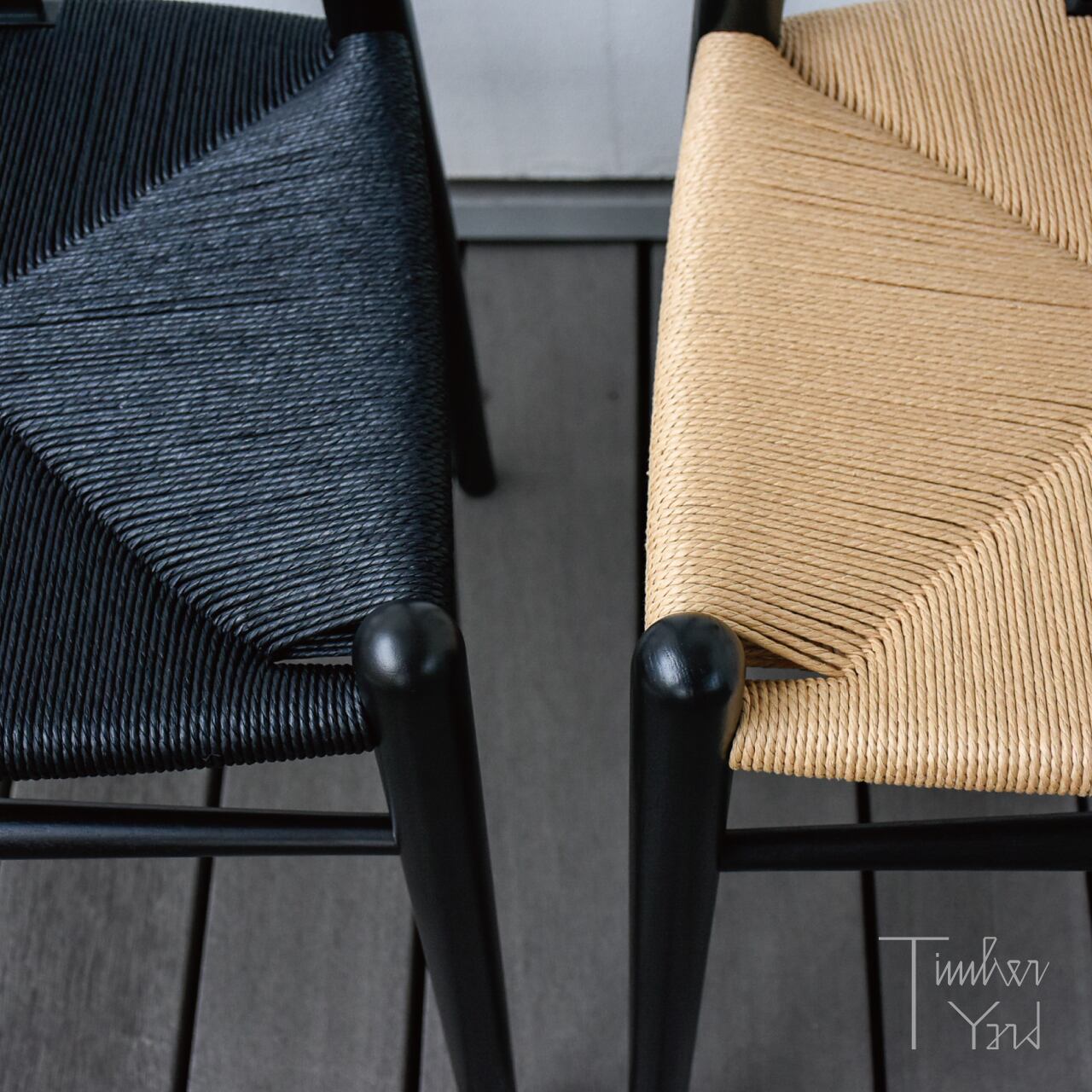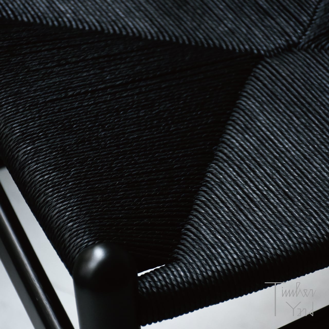 座面には、ナチュラルペーパーコードを一度漂白し、黒に再染色したブラックペーパーコードを採用。デンマークの熟練職人が一本一本丁寧に編み上げ、約150メートルにも及ぶペーパーコードを張る工程には、1脚あたり約1時間を要します。手仕事ならではの美しさと耐久性が息づく仕上がりです。
