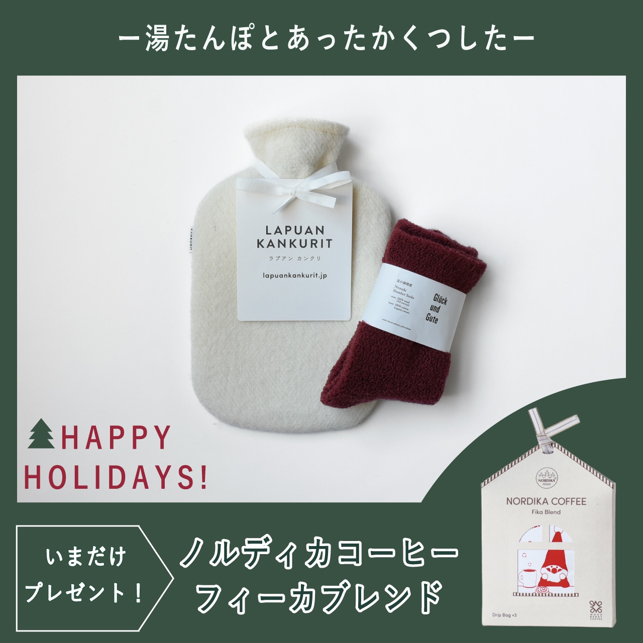 冬のおうち時間をほっと温める、湯たんぽと靴下のセットです。