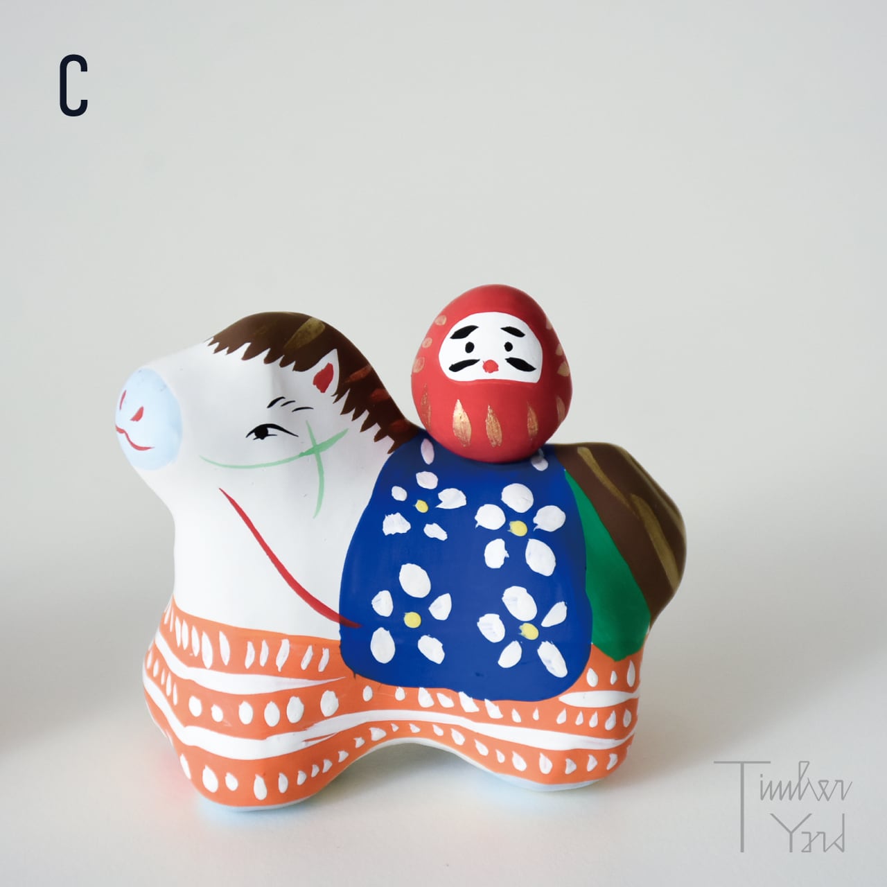 馬の背にちょこんとだるまが乗った、手のひらサイズの張り子。