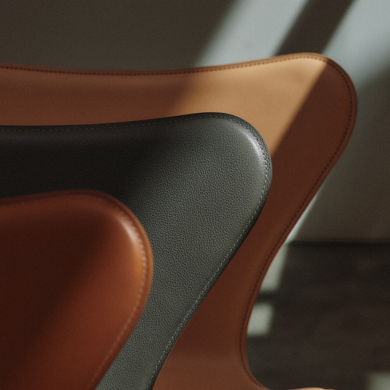 FRITZ HANSEN(フリッツ・ハンセン)からアルネ・ヤコブセンによるセブンチェアの誕生70周年を記念して登場した卓越した美しさを誇るハーネスレザーと、イタリアの職人が手作業でステッチを施したエッジが見事なコントラストを描く、特別なチェアが誕生しました。ひとつひとつの椅子は丁寧にハーネスレザーを張られ、熟練の職人の手でステッチが施されています。デザインアイコンとして世界中で親しまれているセブンチェアが、このたび新たに採用されるハーネスレザーという素材の豊かさを纏います。デザインのポイントであるコントラストカラーの糸が、テーラードスタイルならではの個性を添えます。