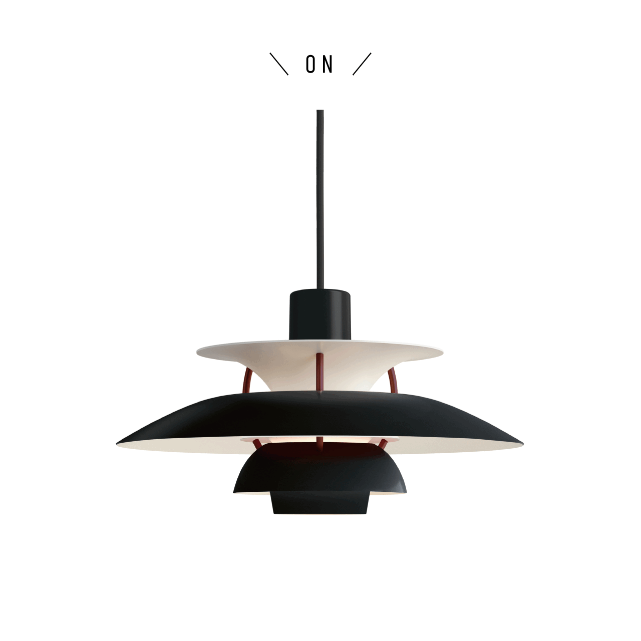 絶えず白熱電球の形状やサイズを変える電球メーカーへの挑戦として、ポール・ヘニングセンは1958年にPH 5を開発しました。それは、ペンダントのメインシェードのサイズ(直径50 cm)にちなんで命名されました。ランプが発売されたとき、彼は、白熱電球メーカーが常識を考慮するか消費者の最善の利益を考えることを学ぶであろうという信念をどのように失ったかについて大胆に書き記しています。「わたしは運命を受け入れ、ルイスポールセンの承諾のもと、クリスマスライトであろうが金属フィラメントの100W電球であろうが、どんな光源も使用できる PH ランプをデザインした。ただし蛍光管だけは、今の形では長すぎて入らない!」