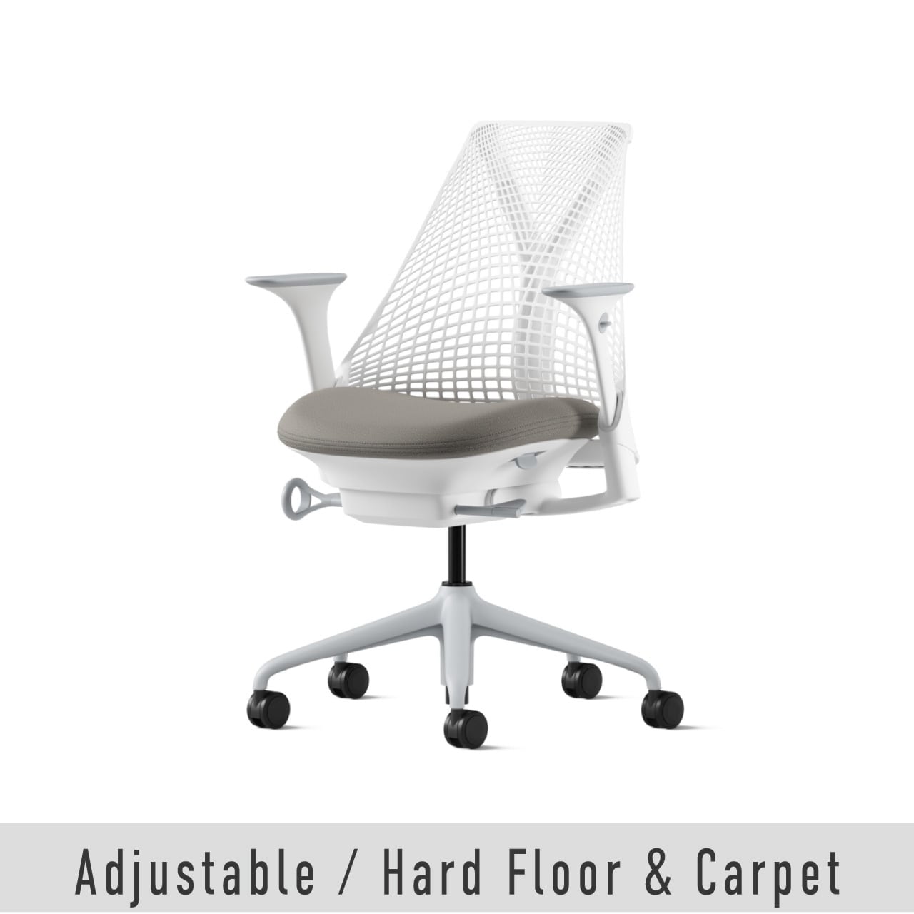 Herman Miller|セイルチェア[ホワイト(フレーム) / フォグ(ベース) / スタジオホワイト(サスペンション) / フェザーグレー(メドレー)(ファブリック) / アジャスタブルアーム / 堅床・カーペット用キャスター ]