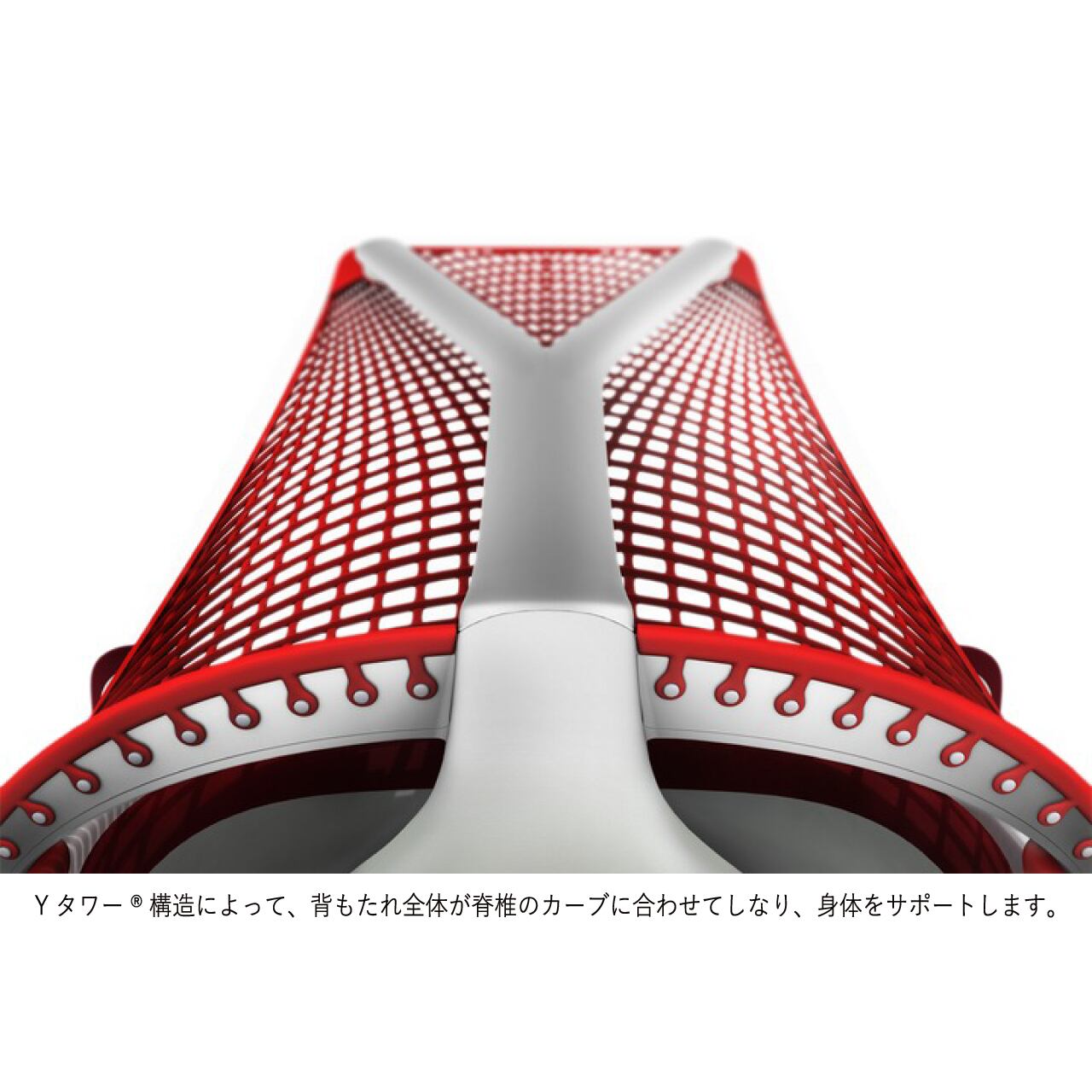 フレームのない3Dインテリジェントサスペンションバックは、エラストマー製ストランドを部位ごとに張力を変えて配置。必要な部分には確かなサポートを、動きたい部分には自由を与え、快適さとしなやかさを両立します。さらに、仙骨を支える形状により背骨が自然なS字を保ち、疲れにくく健康的な姿勢をサポート。通気性にも優れているため、一日中さらりと快適に過ごせます。