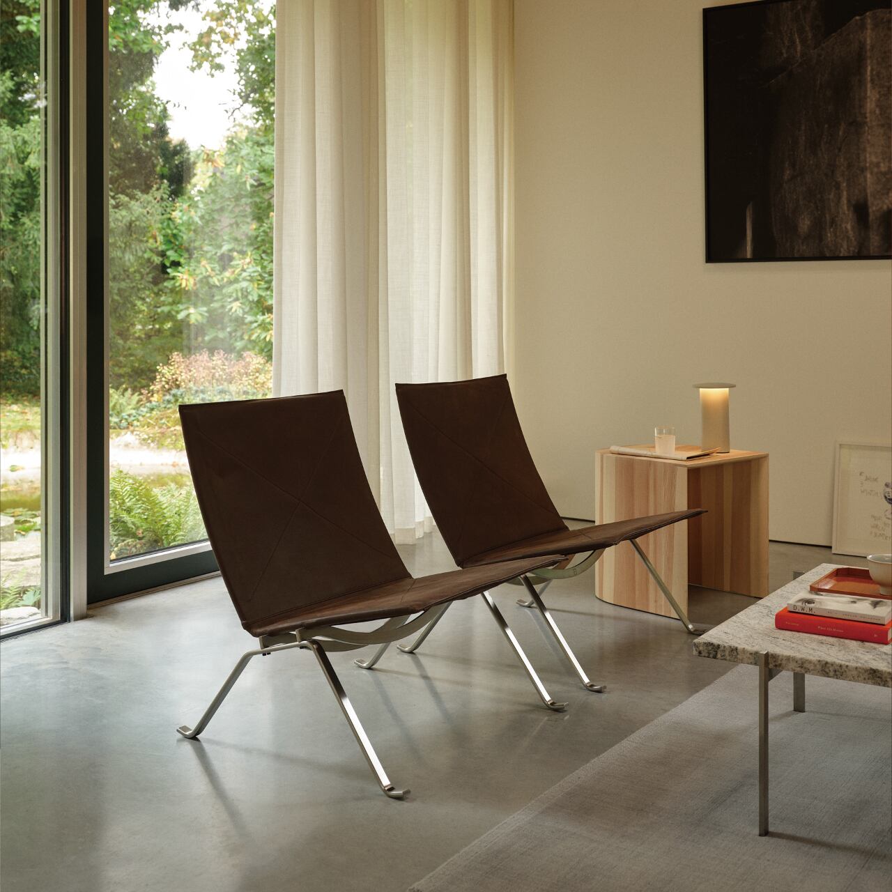 デンマークの建築家・デザイナーであるポール・ケアホルムによってデザインされた《PK22™》。多くを語らずとも伝わるPK22™の魅力はこれまでも多くの人の心を掴んで離しませんでした。美術館や図書館といった公共施設にも選ばれるその静謐な美しさは、空間に品格を与え、見る人、座る人の気持ちを高めてくれます。また、座り心地については、無駄を削ぎ落としたミニマルなフォルムでありながら、身体をしっかりと受け止めてくれる安定感があり、その快適さには驚かされます。