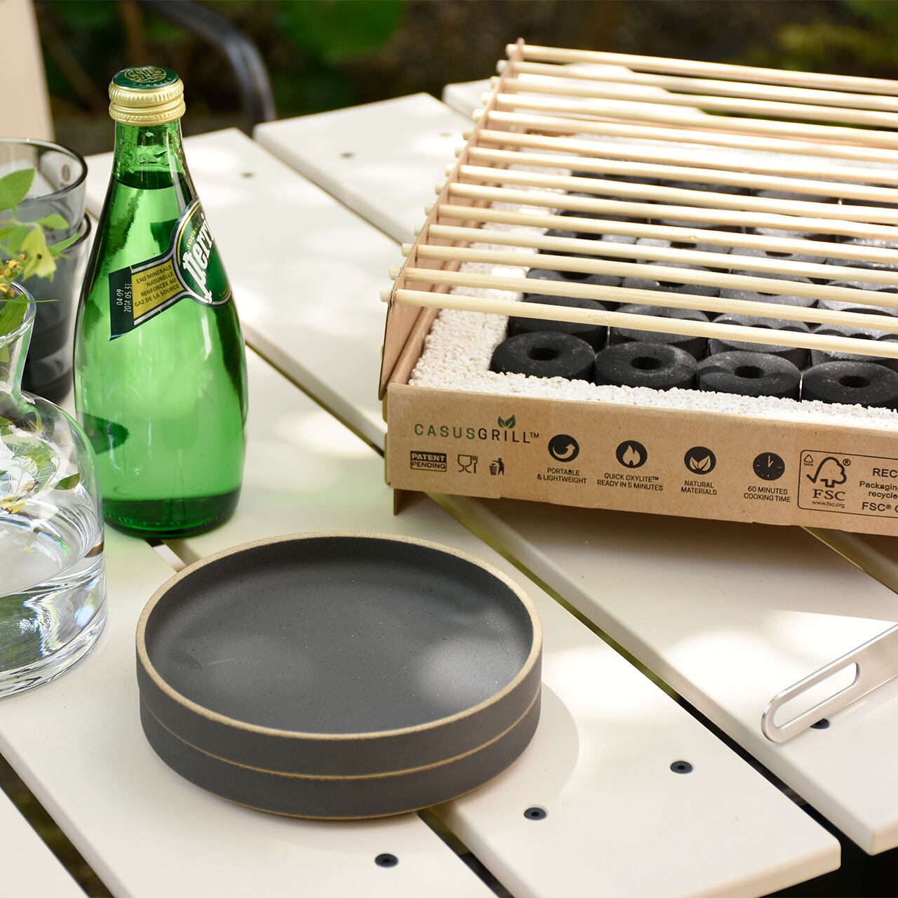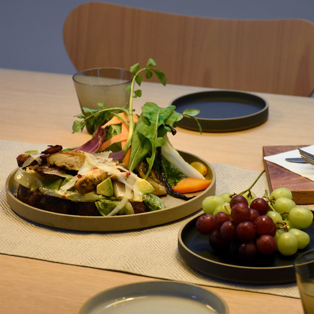 プレートを円筒のように美しくスタッキングができます。また、個々のアイテムが共通の大きさでつくられているのでHASAMI PORCELAINの他の器や、サイズ違いで入れ子のようにスタッキングすることも。使わない時の美しさにも魅せられる方が多く、コレクションもおすすめです。