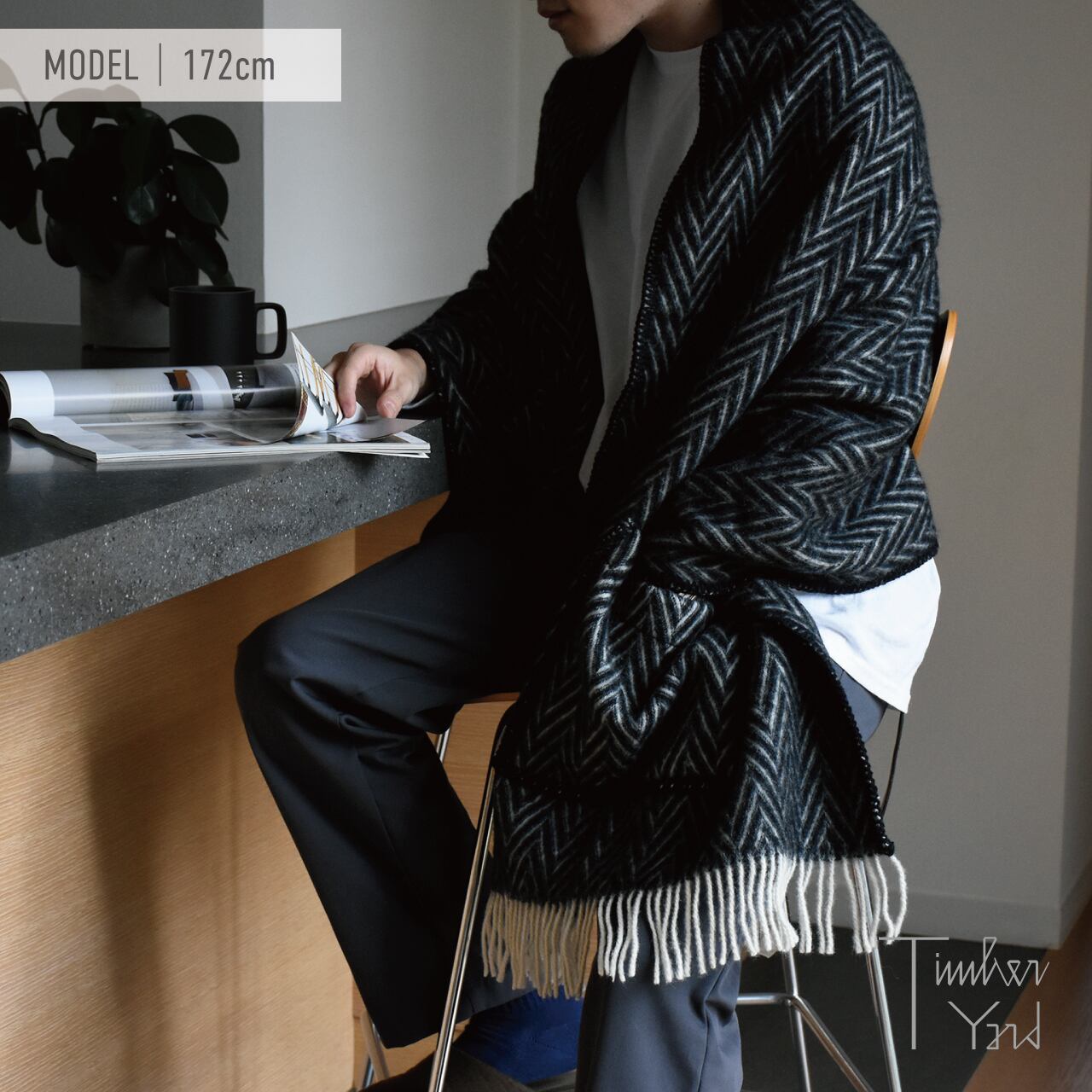【ONLINE限定】IIDA ポケットショール / black-white / 60x200cm+fringes / ポケット付き / ウール / イイダ ポケットショール / LAPUAN KANKURIT(ラプアン カンクリ) | TIMBER YARD(ティンバーヤード)|北欧家具・北欧インテリアの通販サイト