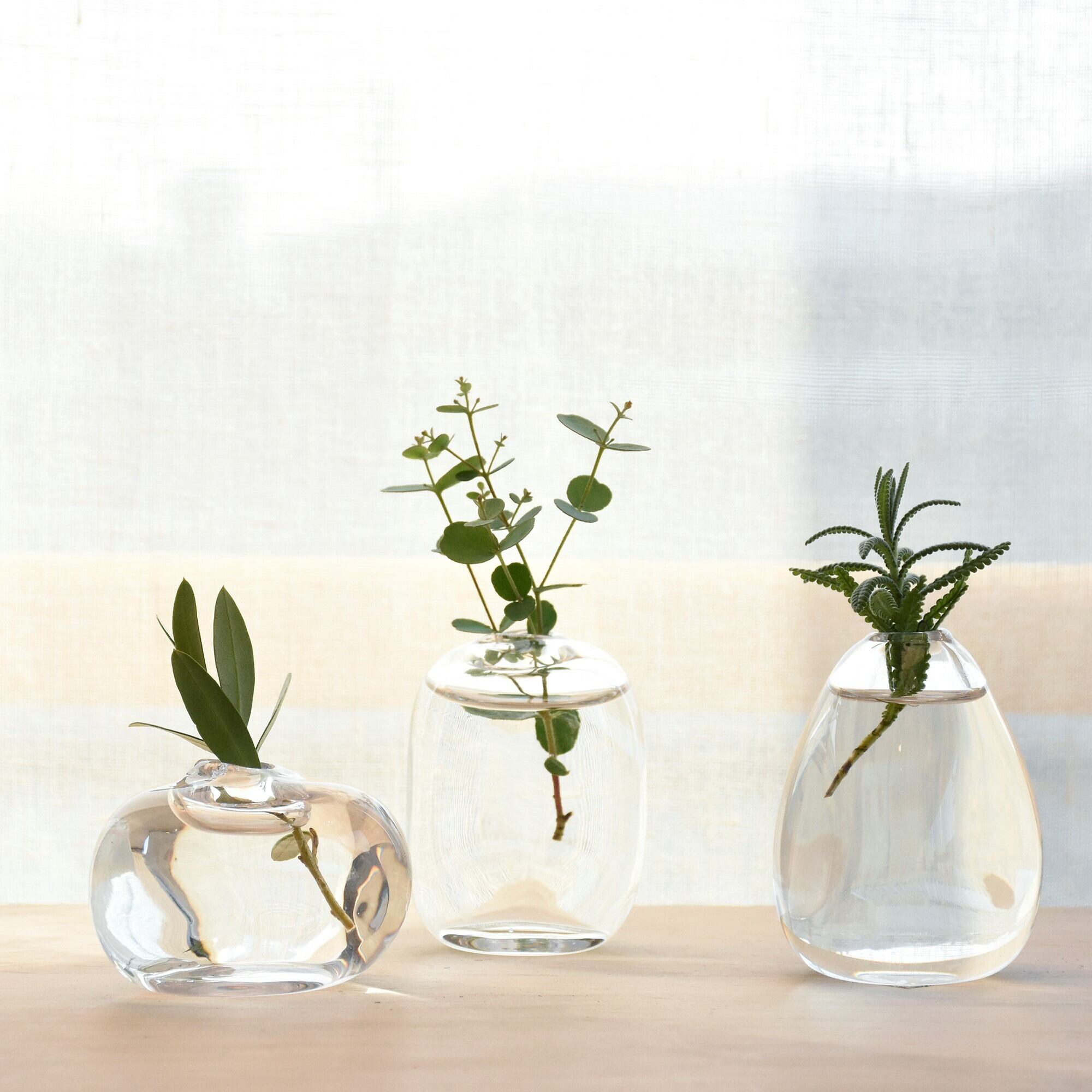 一輪挿しなので一輪も良し、小さなお花をくみあわせて活けてあげるのも良しです。自然の中にある素敵な一輪にも目を向けるチャンス ♪また、ひとつひとつ手に収まる大きさだからこそ、置き場所を選ばず、手軽に小さなお花やグリーンを楽しめます。