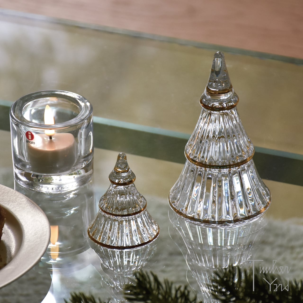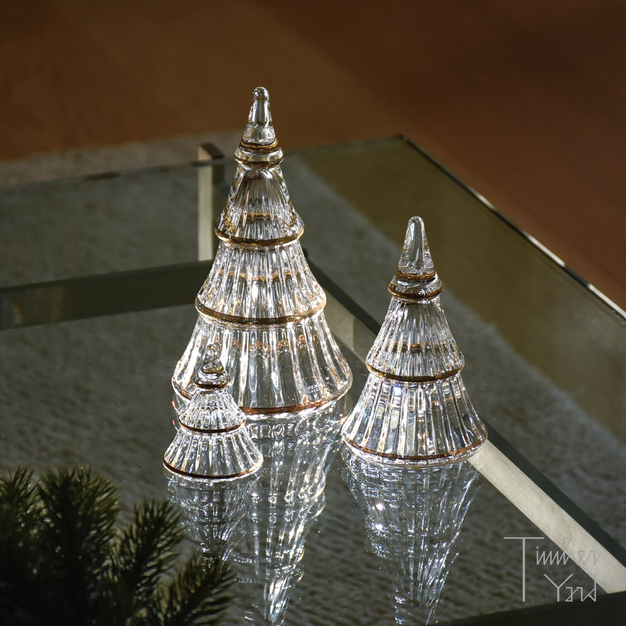 ホルムガードのフェアリーテイルシリーズのクリスマスツリー。反射が美しいガラスツリーにあしらわれたエレガントなゴールドのラインは職人によって手で描かれています。一つ置いてあるだけでもその周囲が輝きますが、サイズ違いでテーブルやシェルフに飾ればいつもよりラグジュアリーな雰囲気に。Sサイズはデスクの上でちょっとクリスマス気分を味わいたい時にも良いですね。