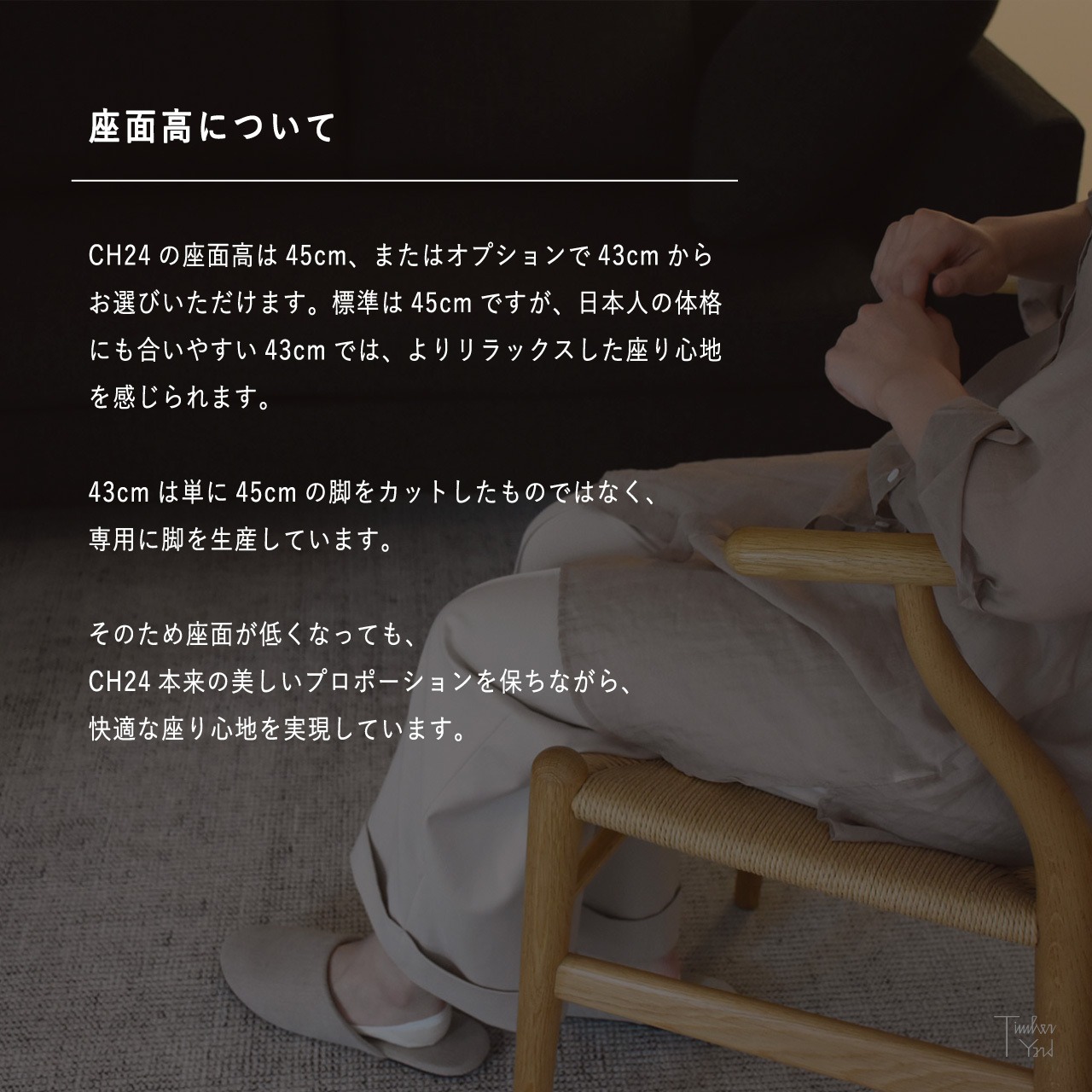 身長の異なるスタッフがシートハイ43cmと45cmのCH24に座ってみました。ぜひ購入の際の参考にしてみてください!