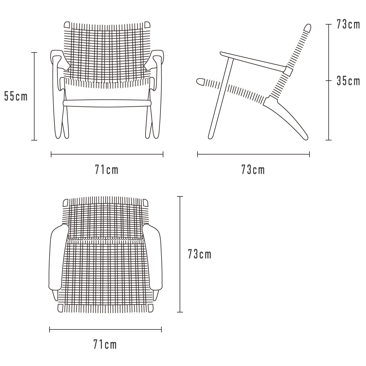 背もたれと座面の全面を覆うペーパーコードが印象的なCH25。MG501|キューバチェアのペーパーコード仕様ともよく比較されますが、CH25はゆったり幅広なアームレストがあるのが特徴です。フラットなアームレストがあまりにも安定感が良く、優雅な気分を味わうことができます。アームレストのあるチェアは多くありますが、ここまでゆとりをもったつくりは珍しく、手のひらでなでたくなるような滑らかさです。