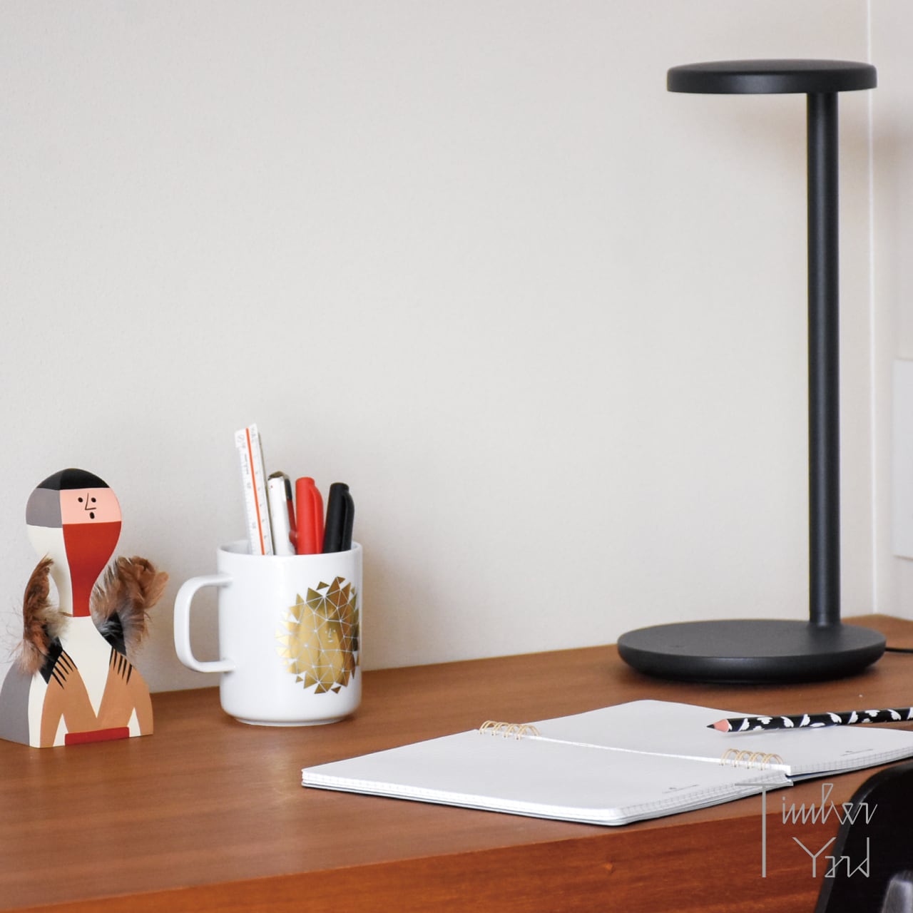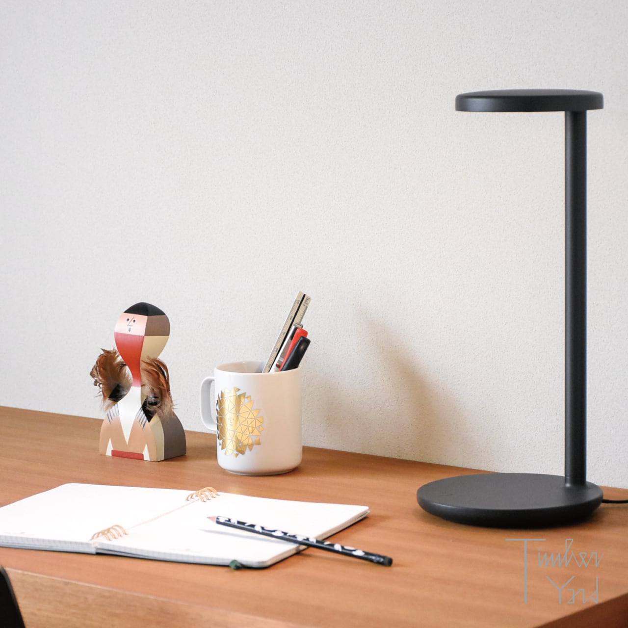 obliqueは英語で”斜め”という意味。その名の通り、斜めに光を届けます。一般的なタスク照明は、照らしたいところにアームやヘッドを動かし調整しますが、オブリークはその必要がありません。薄くてコンパクトなヘッドからは、なんと最大で1m50cmほど光が飛ぶよう設計されています。ベースのボタンでは、100%~1%で調光も可能です。