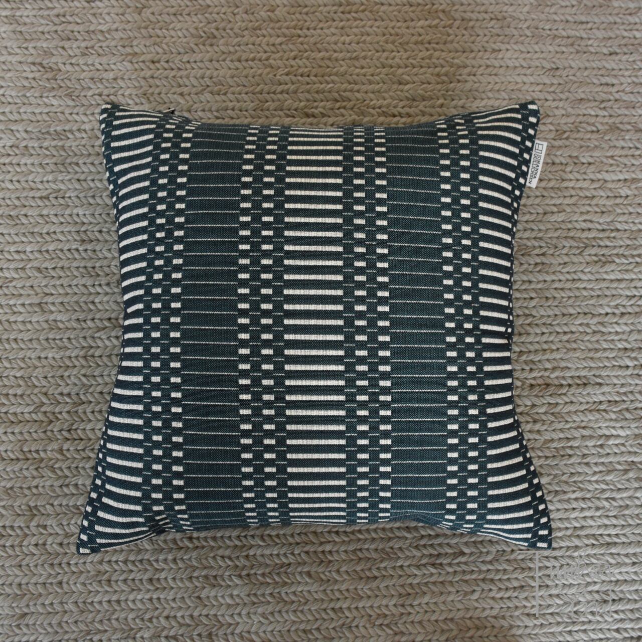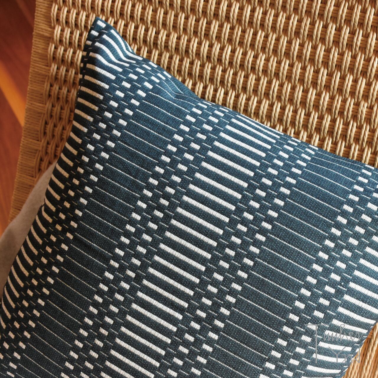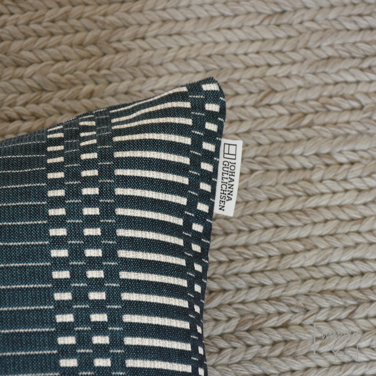 フィンランドの伝統的な織物の手法で織られたノルマンディ・コレクションのコットンファブリックを使ったクッションカバー。