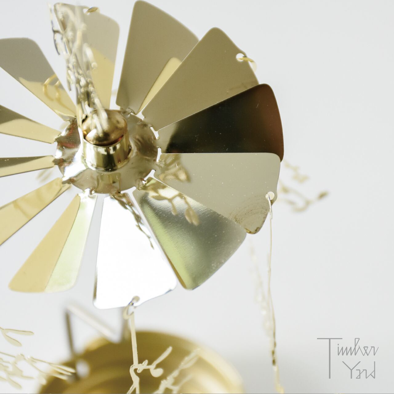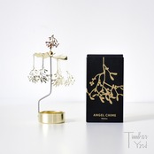 メタル素材で作られたロータリーキャンドルは、ろうそくの火が反射して自然ときらきらと輝きながら回ります。羽についたクリスマスモチーフのモビールも揺れながらどこか楽し気な雰囲気で煌びやかに動きます。