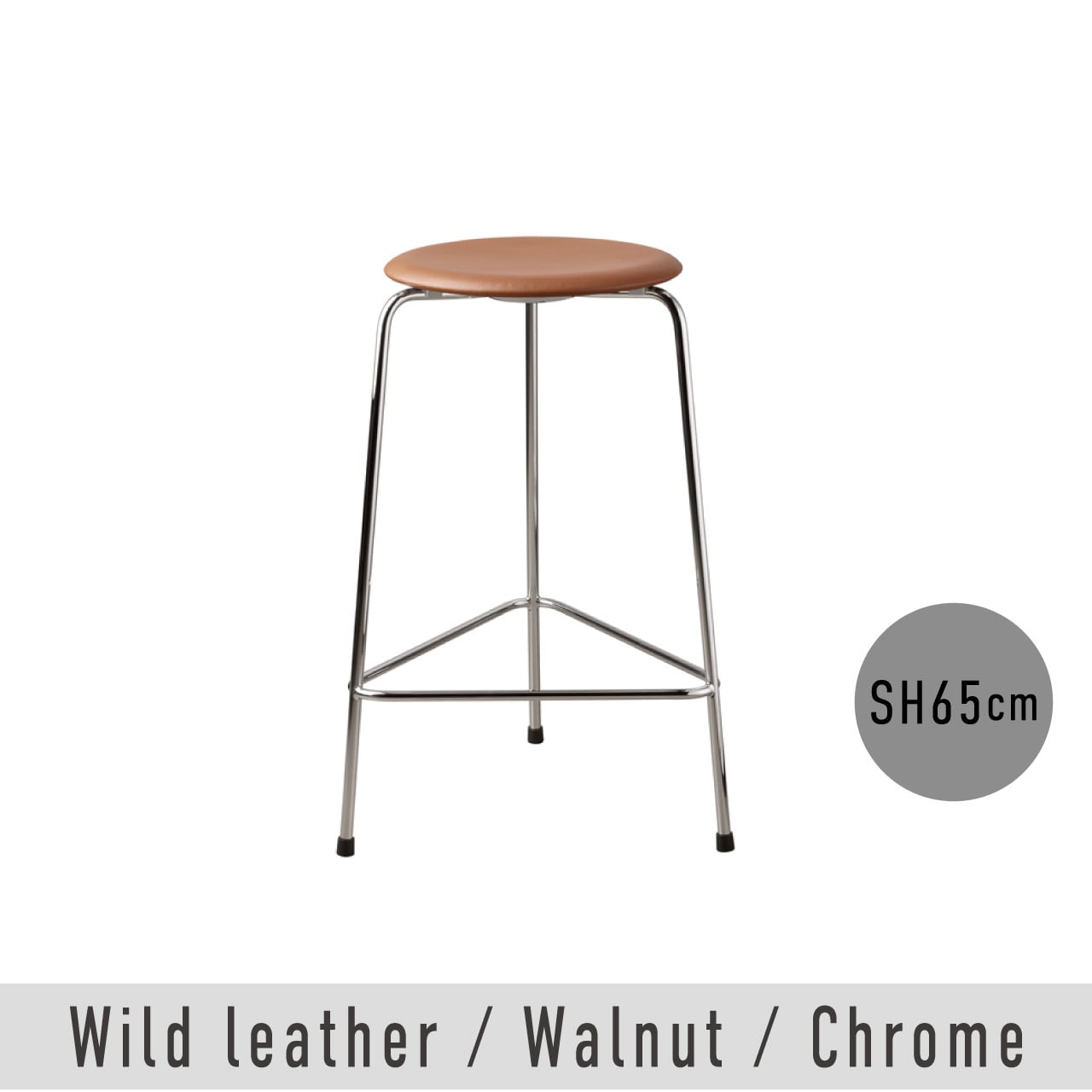 HIGH DOT / ハイドットカウンタースツール(840107)/ SH65cm / 3本脚 / ワイルドレザー / ウォルナット / クローム脚 / アルネ・ヤコブセン / FRITZ HANSEN(フリッツ・ハンセン)/ カウンタースツール / 正規販売店