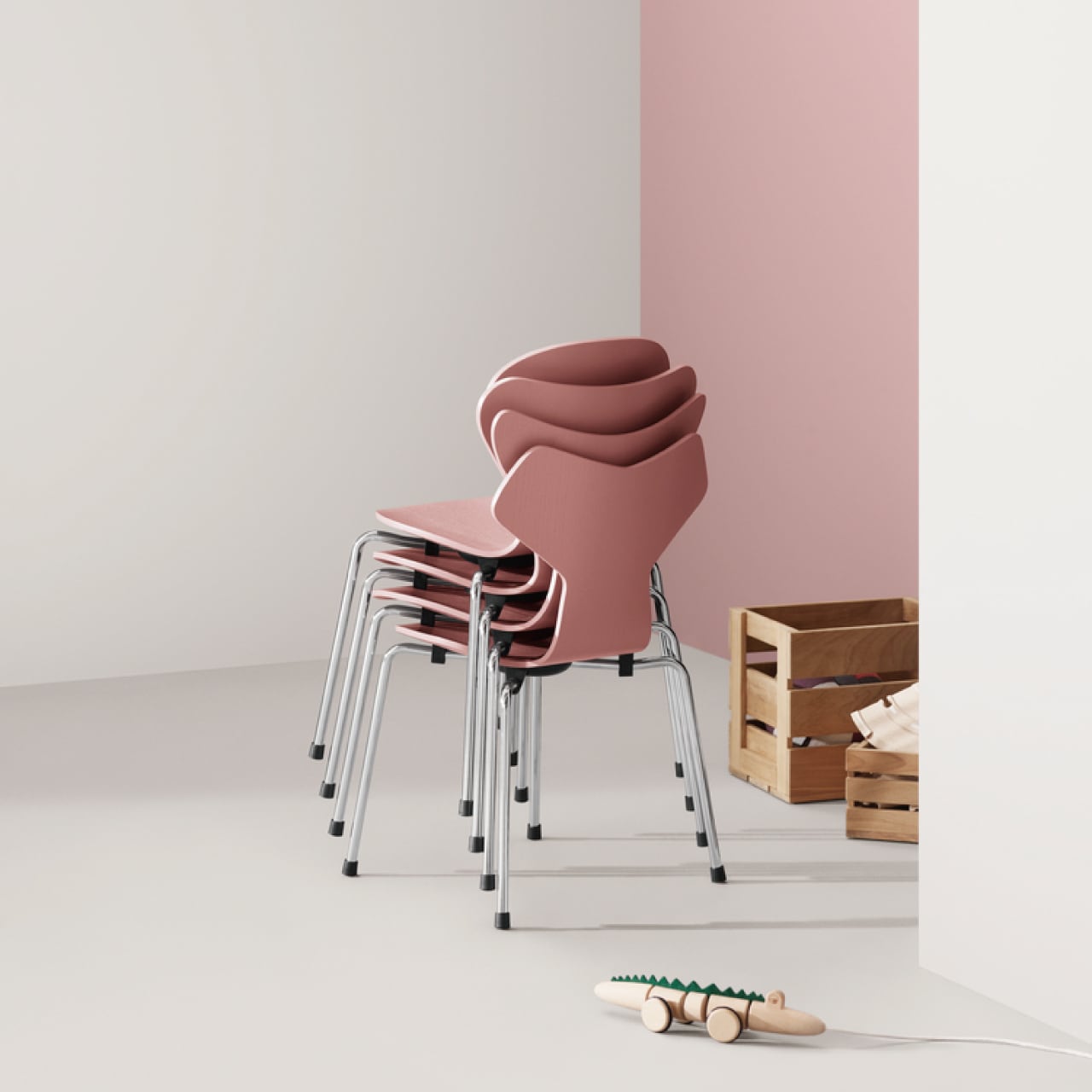 子供用セブンチェア(3177)/ カラードアッシュ(ワイルドローズ)/ クローム脚 / アルネ・ヤコブセン / FRITZ HANSEN(フリッツ・ハンセン)/ 正規販売店 | TIMBER YARD(ティンバーヤード)|北欧家具・北欧インテリアの通販サイト
