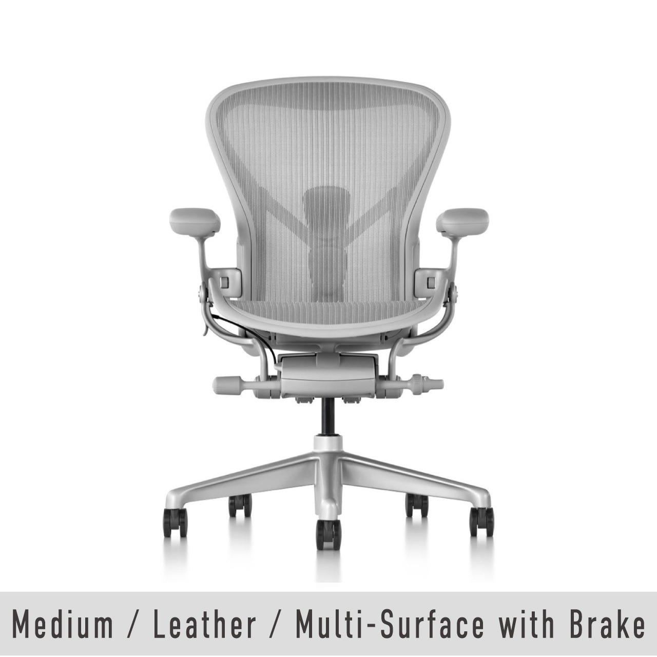 Herman Miller|アーロンチェア[ミネラル(フレーム) / サテンアルミニウム(ベース)/ B-ミディアム / レザー(アームパッド)/ 堅床&カーペット用ブレーキングキャスター ]
