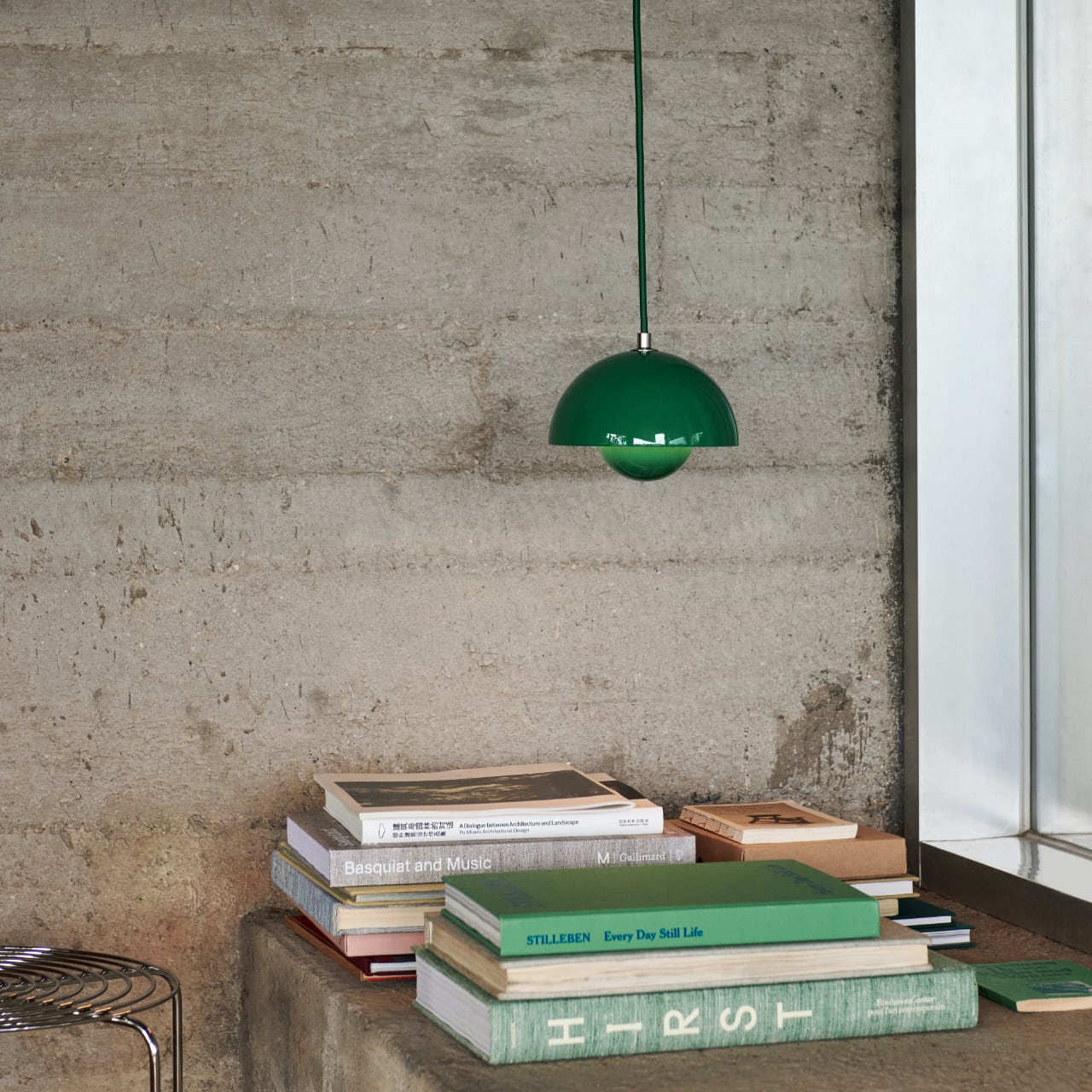 ドーム型のアッパーシェードと、そこからぶら下がっているような丸みを帯びた下側のシェードが作るシルエット、そして鮮やかなカラーが特徴のフラワーポットは、ヴァーナー・パントンが常に新しいデザインを追い求めていた挑戦的な姿勢を体現しています。