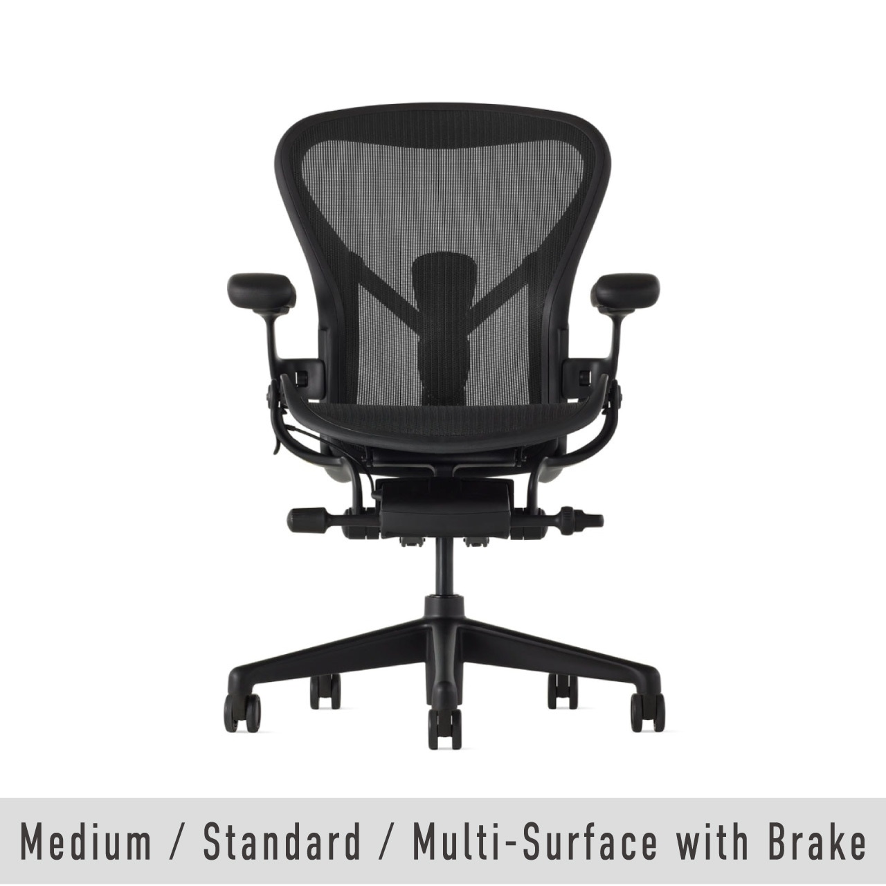 Herman Miller|アーロンチェア[ブラック(フレーム) / オニキス(ベース)/ B-ミディアム / ビニール(アームパッド)/ 堅床&カーペット用ブレーキングキャスター ]