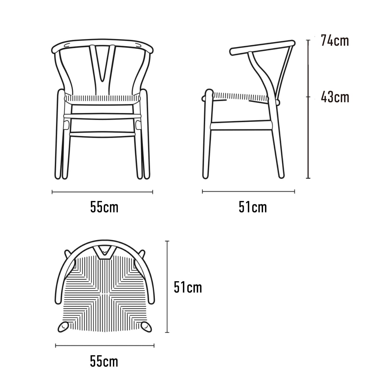 座った時の安定性と心地よい使用感。背もたれは、背中の気持ちの良いところに当たり、座面のペーパーコードは身体をじんわりと受け止めます。またペーパーコードは使うたびにその人の体になじみ、よりしっくりとくる座り心地に変化していきます。日本において、ダイニングチェアとして多くの人に親しまれているYチェア。実はゆったりとくつろげる”ラウンジチェア”としてデザインされています。ひとたび手に入れれば、使用の幅は広く、空間のアイコンとしてもお楽しみいただけます。