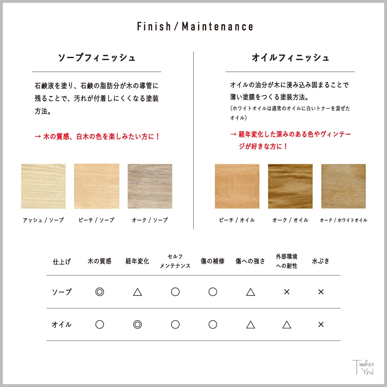 木目が不規則に交錯するのが特徴のウォルナット材。普通、経年変化というと色が濃くなっていくイメージですが、ウォルナット材ははじめは濃い茶色から経年変化によって明るくまろやかな茶色へと変わっていきます。優しい雰囲気に変わって味わいが増していく様子をお愉しみください。