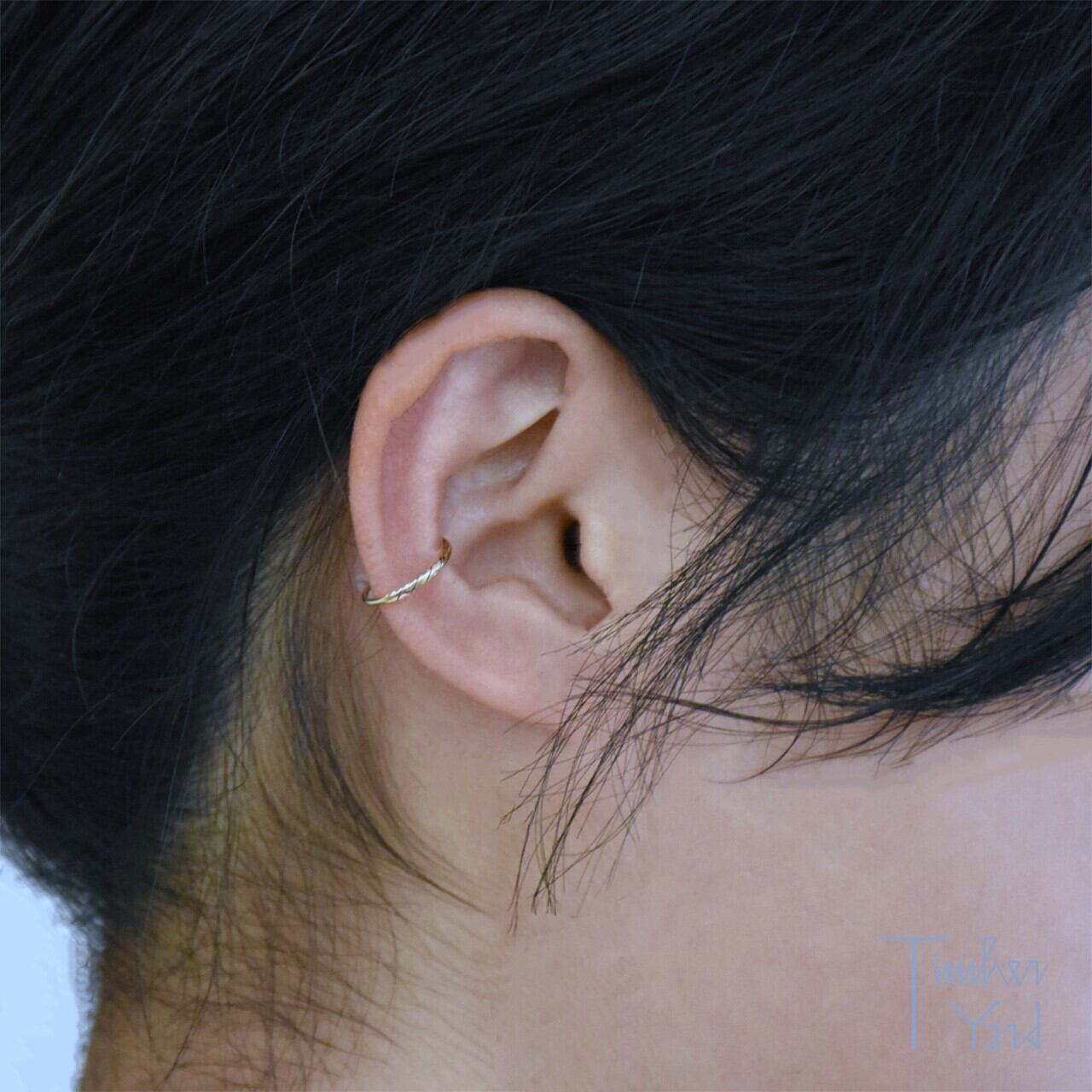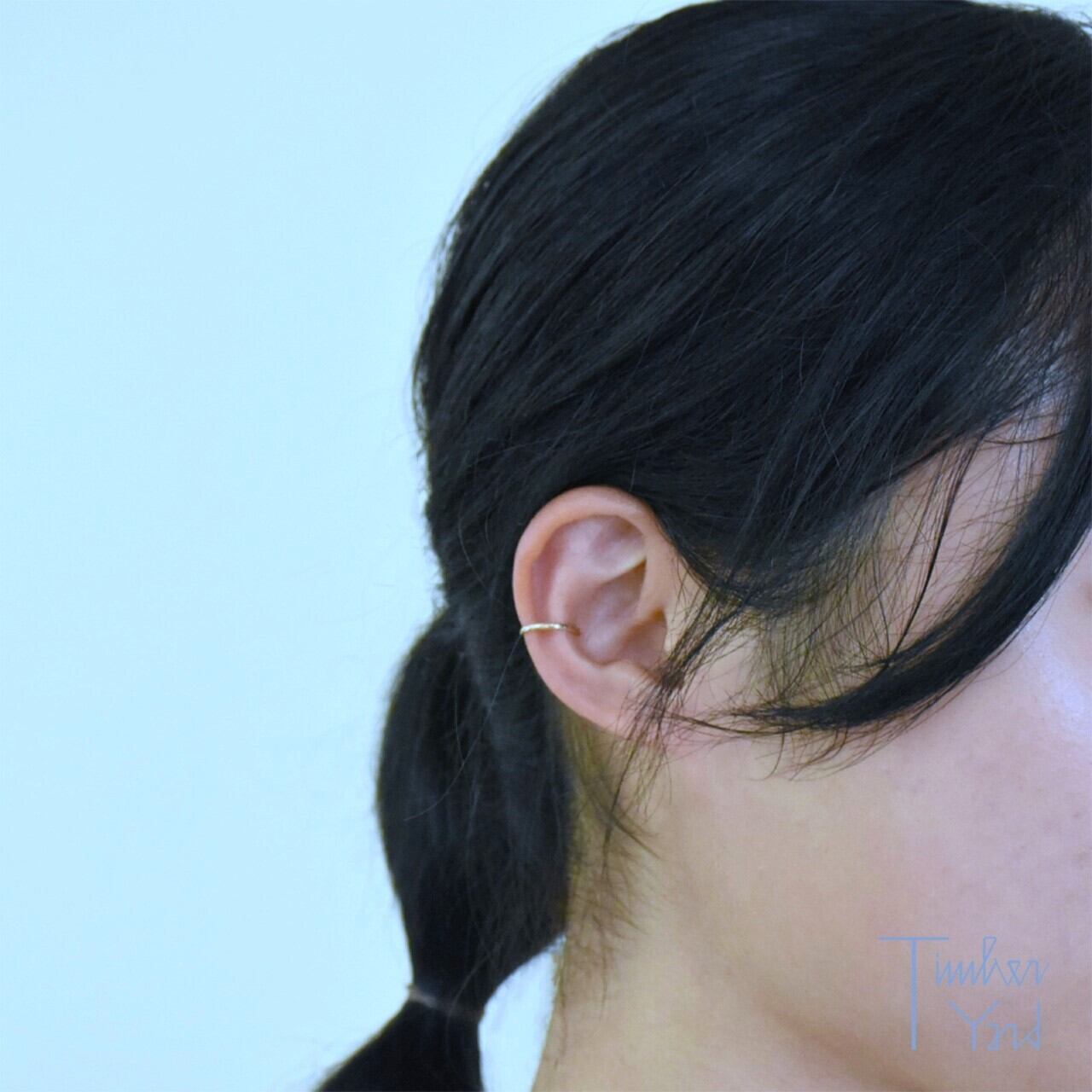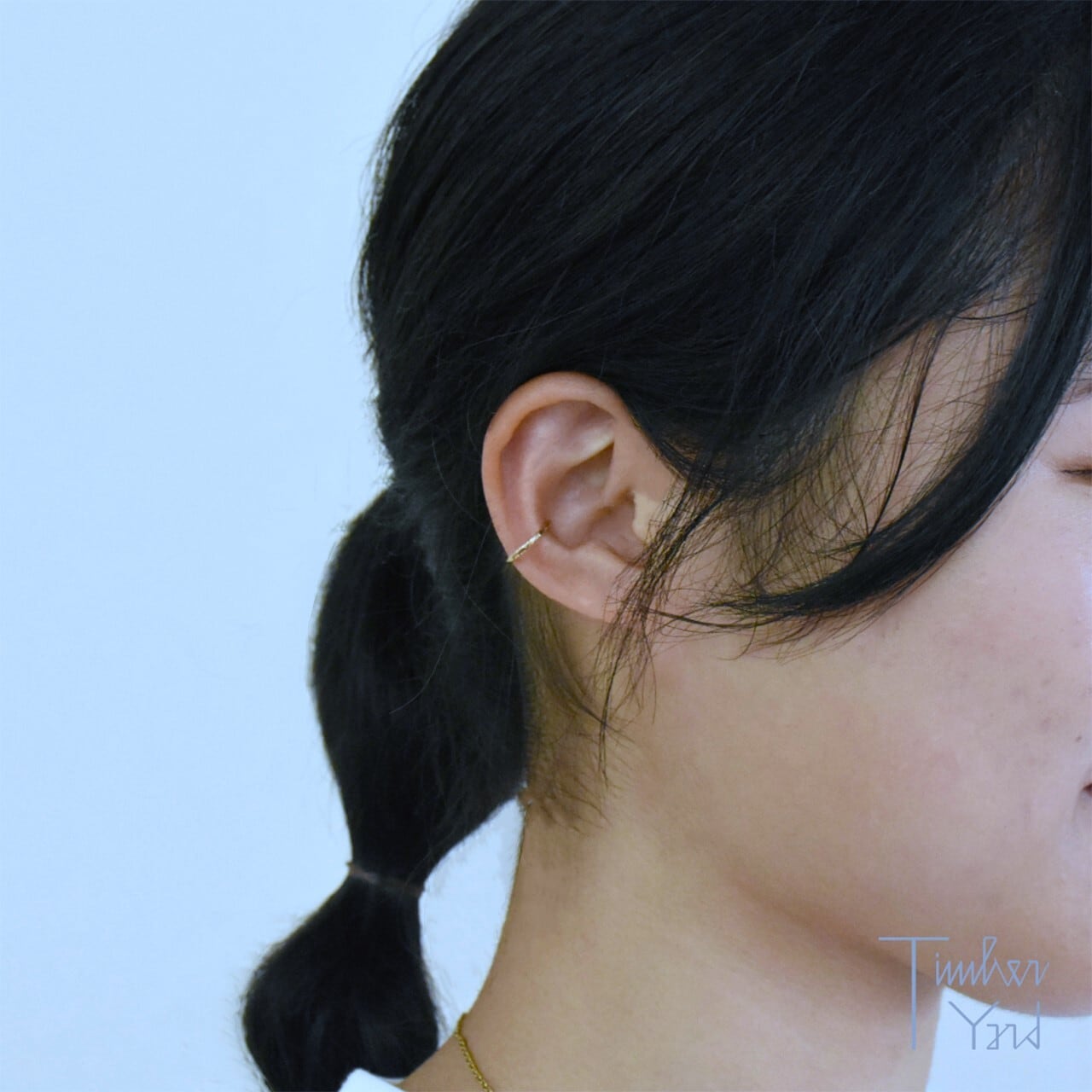 ツイストフープイヤーアクセサリーはピアス / イヤーカフとして使うことができます。名の通り、華奢なラインはツイストがかかっており優しい輝きを放ちます。シリコンボールがついているため、小さく繊細ですがしっかり耳にとまるようになっています。2つで1セットのため、その日のテイストに合わせてつける個数を変えるなどアレンジを楽しむことができます。