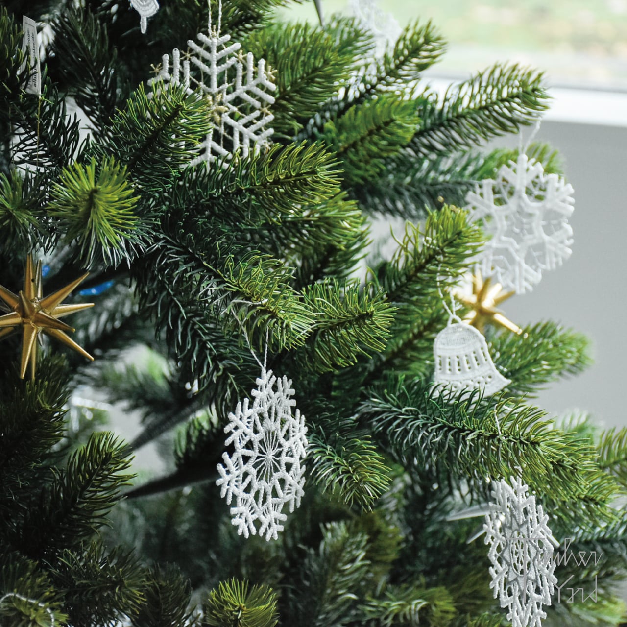 繊細な雪の結晶がモチーフのオーナメント。6枚すべて異なるデザインのオーナメントは、シルバーと白糸とのコンビネーションでホリデー気分をぐっと高めてくれます。クリスマスツリーによく映えるので、たとえばテグスや糸で縦や横につなげて飾るのもおすすめです。
